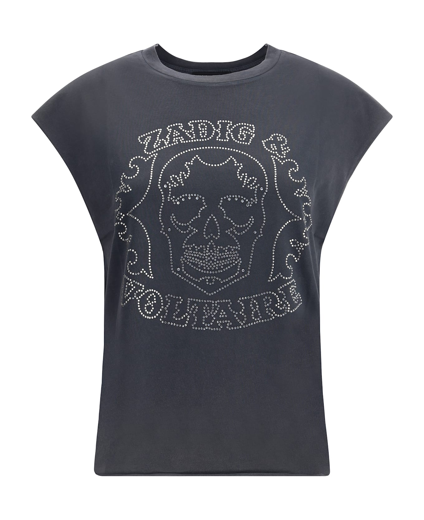 The zadig&voltaire t-shirt expresses a rock and casual attitude. featuring a skull-shaped rhinestone motif on the front, it is made with extra-short raw-cut sleeves, for a bold and contemporary look.
