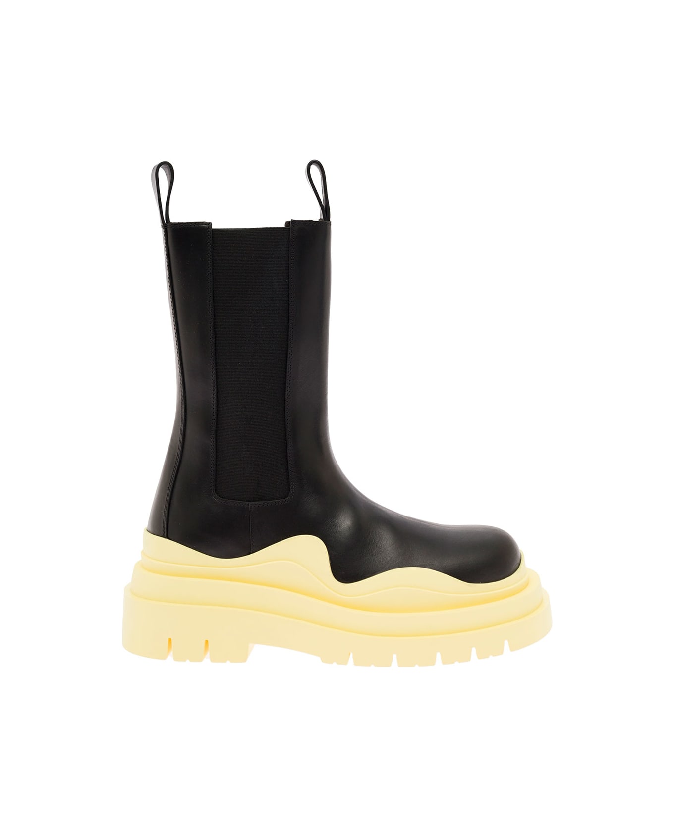 Bottega Veneta Woman's Black Leather Lug Boots With Yellow Sole