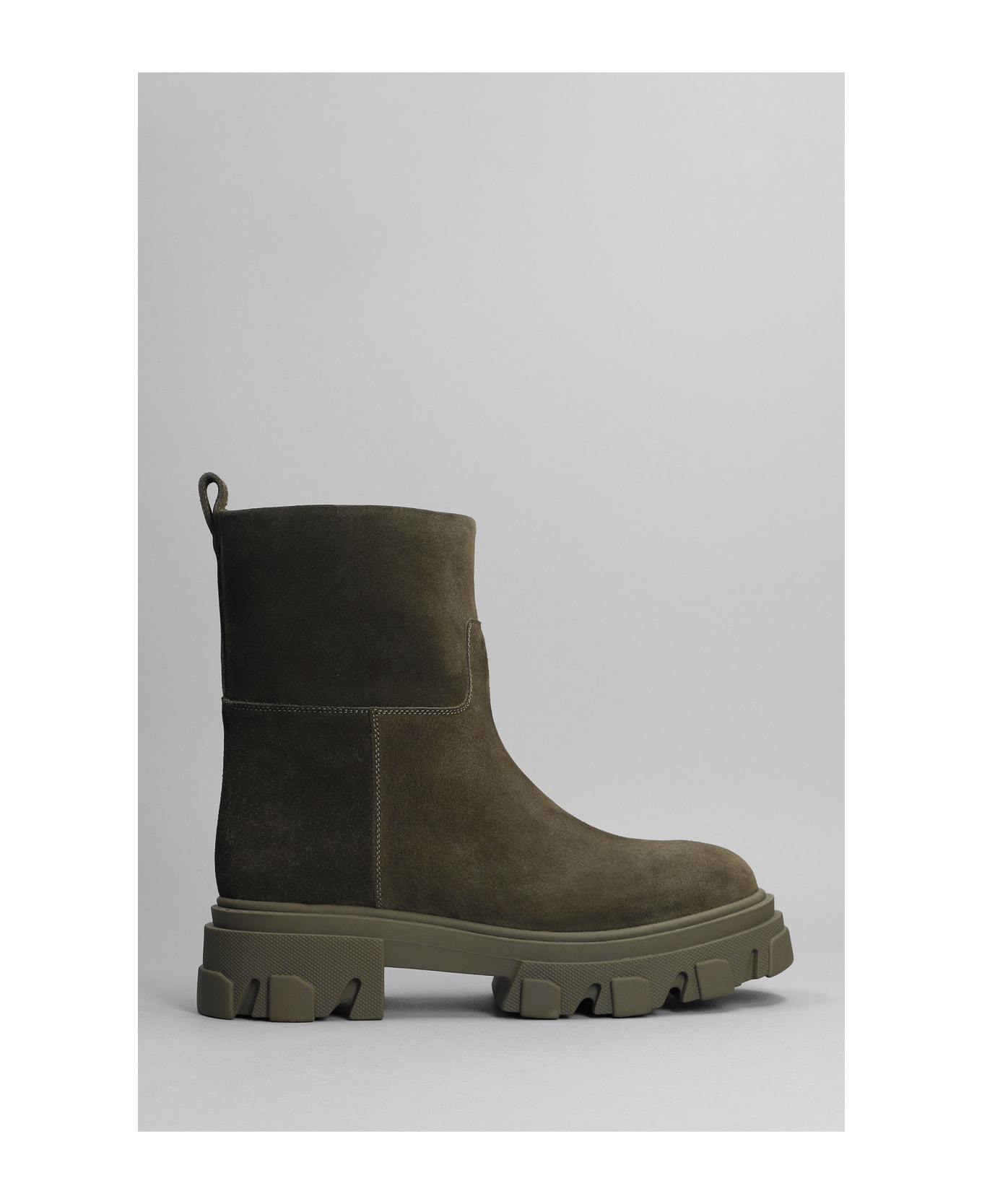 Gia 23 Combat boots in green suede, almond toe, heel 55mm, straight leg, 100% suede, Made in Italy