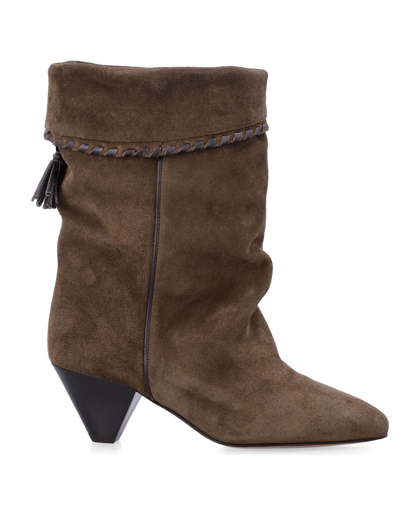 A Signature Of Effortless Parisian Chic, The Dalby Boots By Isabel Marant Feature Soft Suede Calfskin Leather With Elegantly Draped, Fold-over Uppers. Designed With A Sharp Pointed Toe And Metallic Leather Cone Heel, They Exude Modern Femininity And A Sculptural Silhouette. A Refined Yet Relaxed Statement For Both Daywear And Evening Looks. Draped Suede Calfskin Upper Folded, Slouchy Shaft Design Pointed Toe Silhouette Cone Heel Leather Insole, Lining, And Outsole Heel: 5,5 Cm