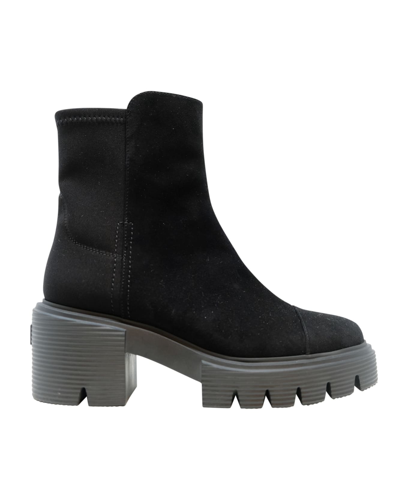 STUART WEITZMAN SC723 BLACK SUEDE 50/50 SOHO BOOTIE BOOTS, product code SC723, style name  50/50 SOHO BOOTIE, color BLACK, material SUEDE, season FW22