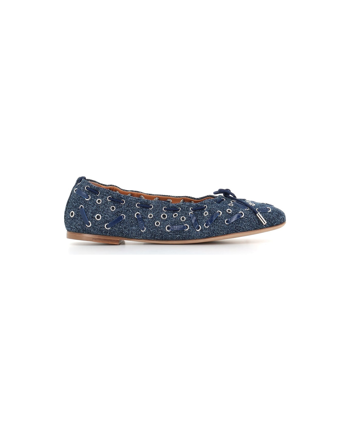 Denim and leather Ballerina from Chloè, featuring by all-over gold eyelets and laces. Flexible leather sole. Lined interior. Heel: 1 cm Composition: Denim