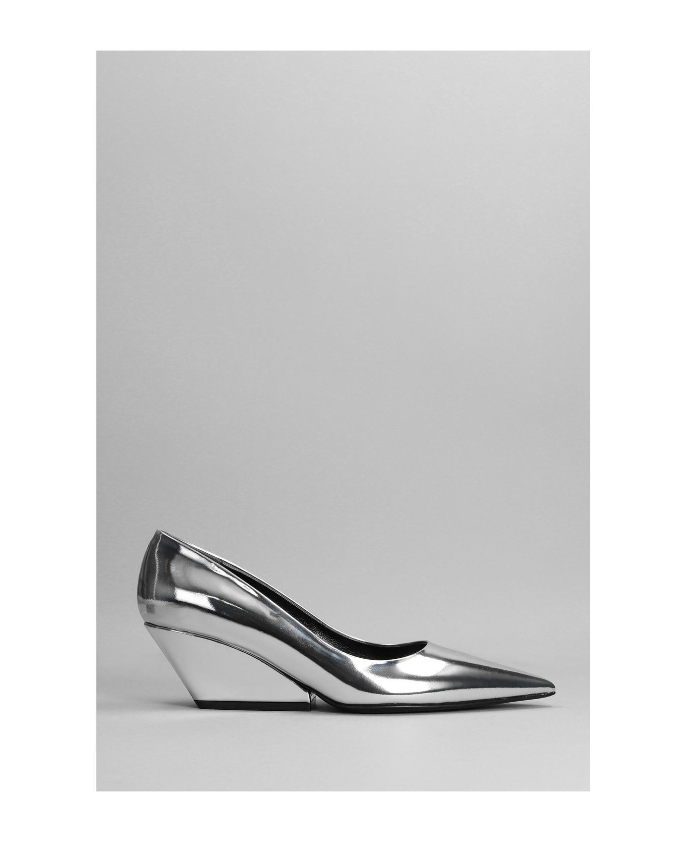 Pumps in silver leather, pointed toe, mirror detail, heel 55mm, 100% leather, leather sole, Made in Italy