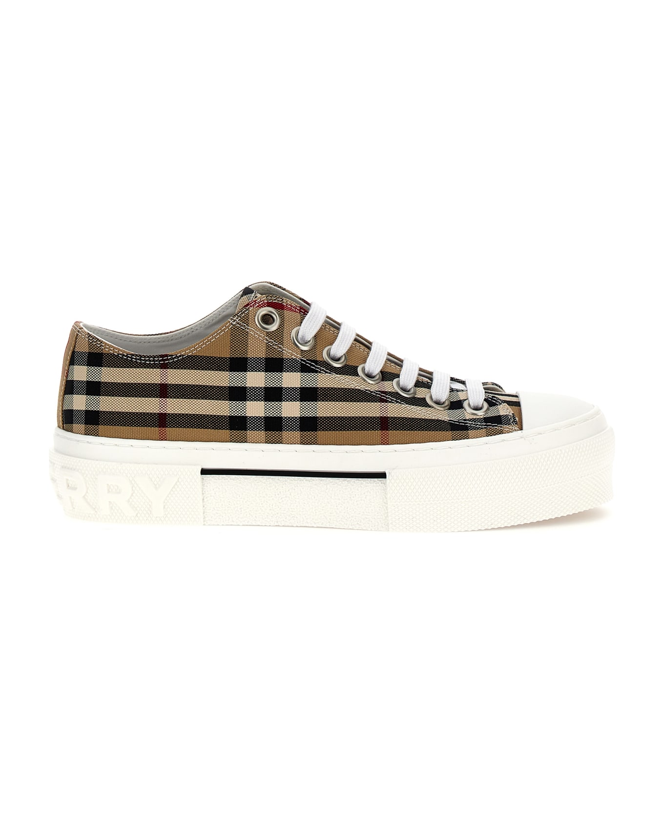 Check print canvas sneakers, lace-up closure, rubber sole with logo on the back. Composition: 95% cotton 5% calf leather