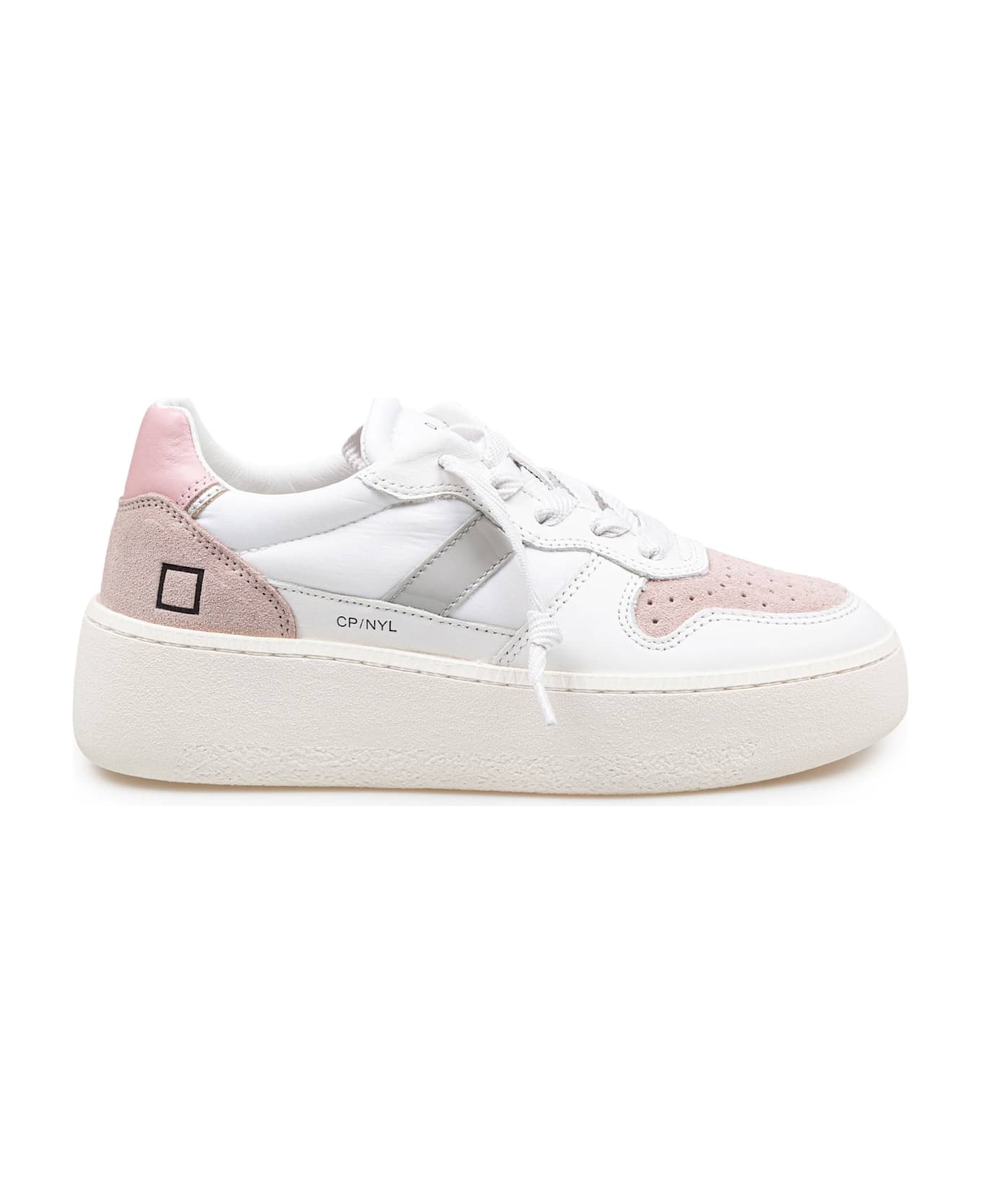 D.a.t.e Sneakers Court Platform In Leather And Suede White And Pink