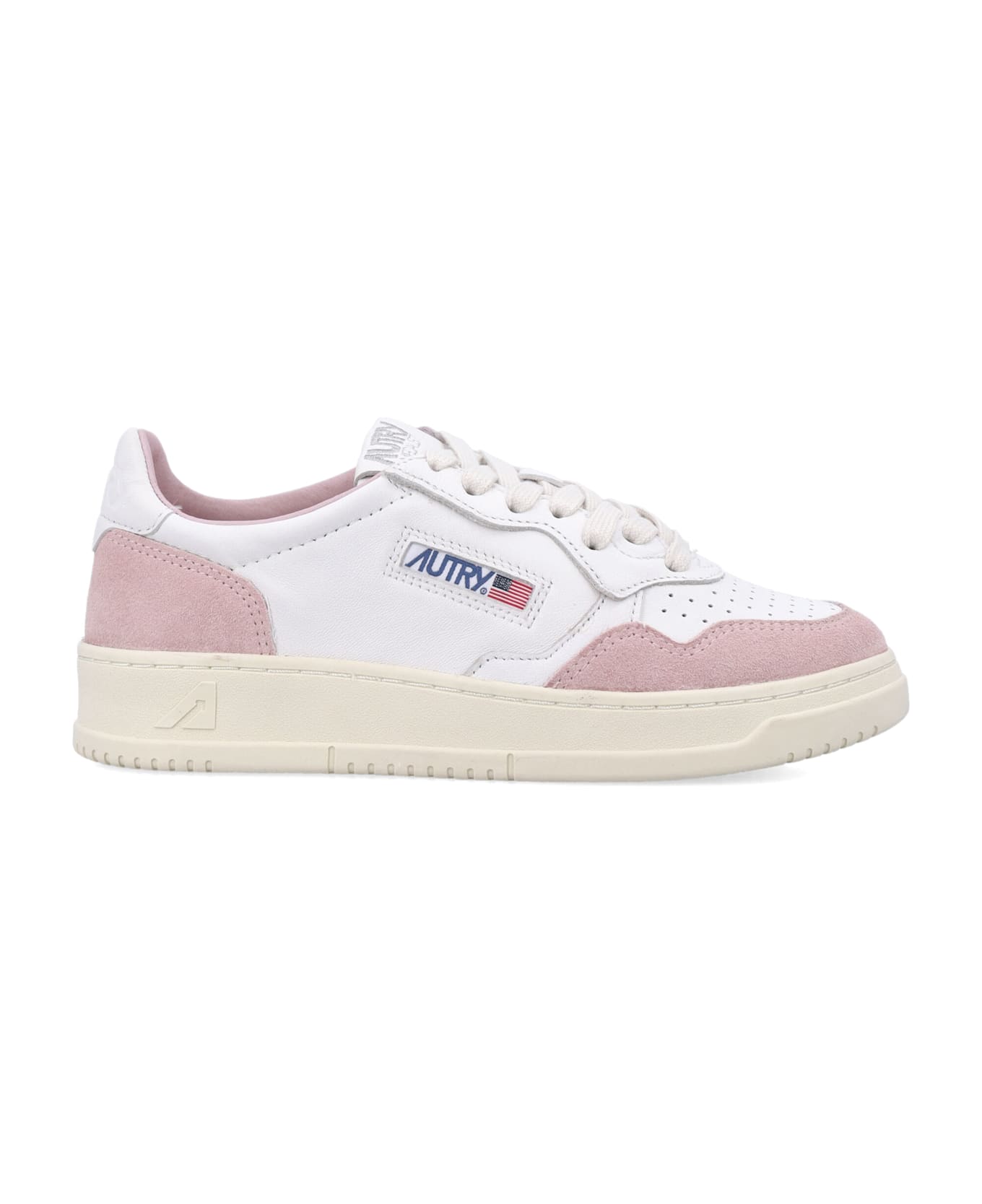 Medalist Low-top Woman's Sneakers By Autry. Featuring: Leather Upper With Contrast Suede Leather Inserts Lace-up Fastening Round Toe With Perforated Details Embroidered Patch At Tongue Contrast Heel Counter With Engraved Logo Side Fabric Logo Insert Rubber Sole