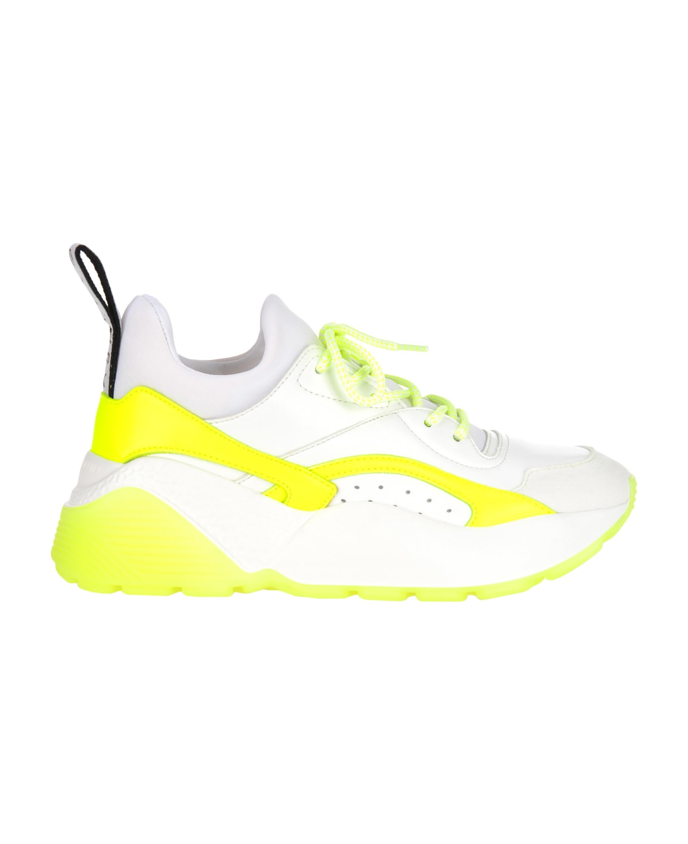 White And Neon Yellow Eclypse Sneakers By Stella Mccartney. Featuring A Round Toe, A Front Lace-up Front, Perforated Details, A Logoed Rear Pull Tab A Ridged Rubber Sole.