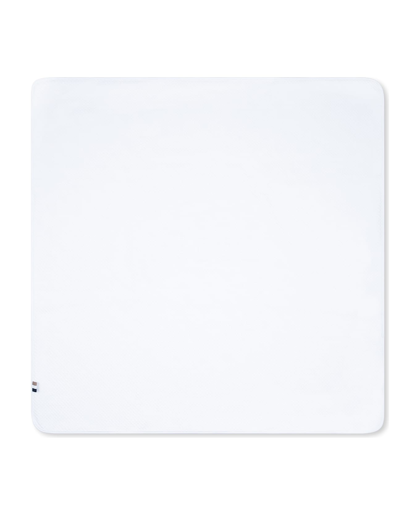 White cotton blanket; embellished with all-over panda and logo patch, on one side and with embroidered logo and tricolour patch on the other side.