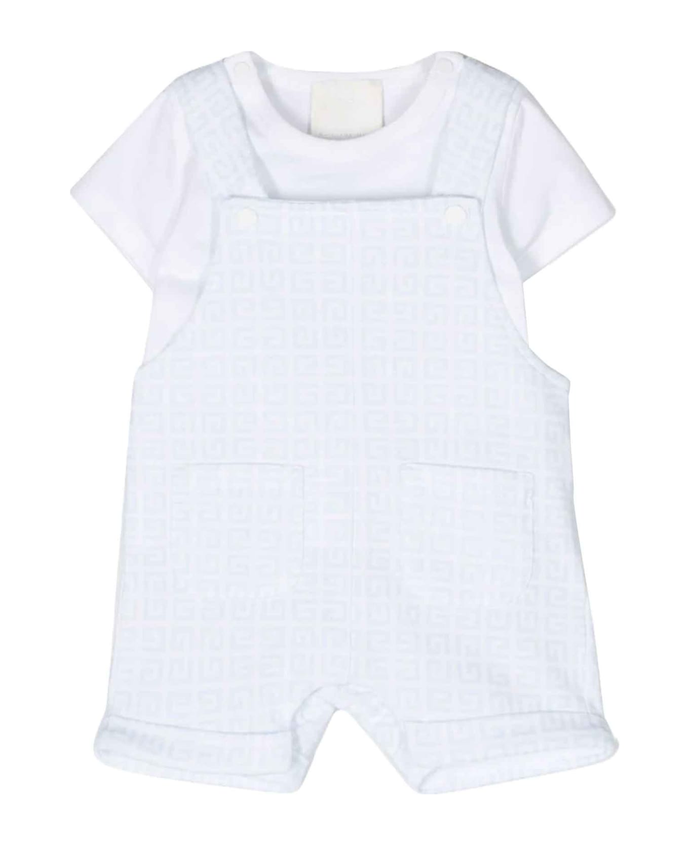 Blue romper baby unisex. Logo print to front, short sleeves, straight hem, signature 4G motif, all-over logo print, square neckline, spaghetti straps, two front patch pockets and above knee length. Your purchase will arrive with a gift package. 100% Cotton