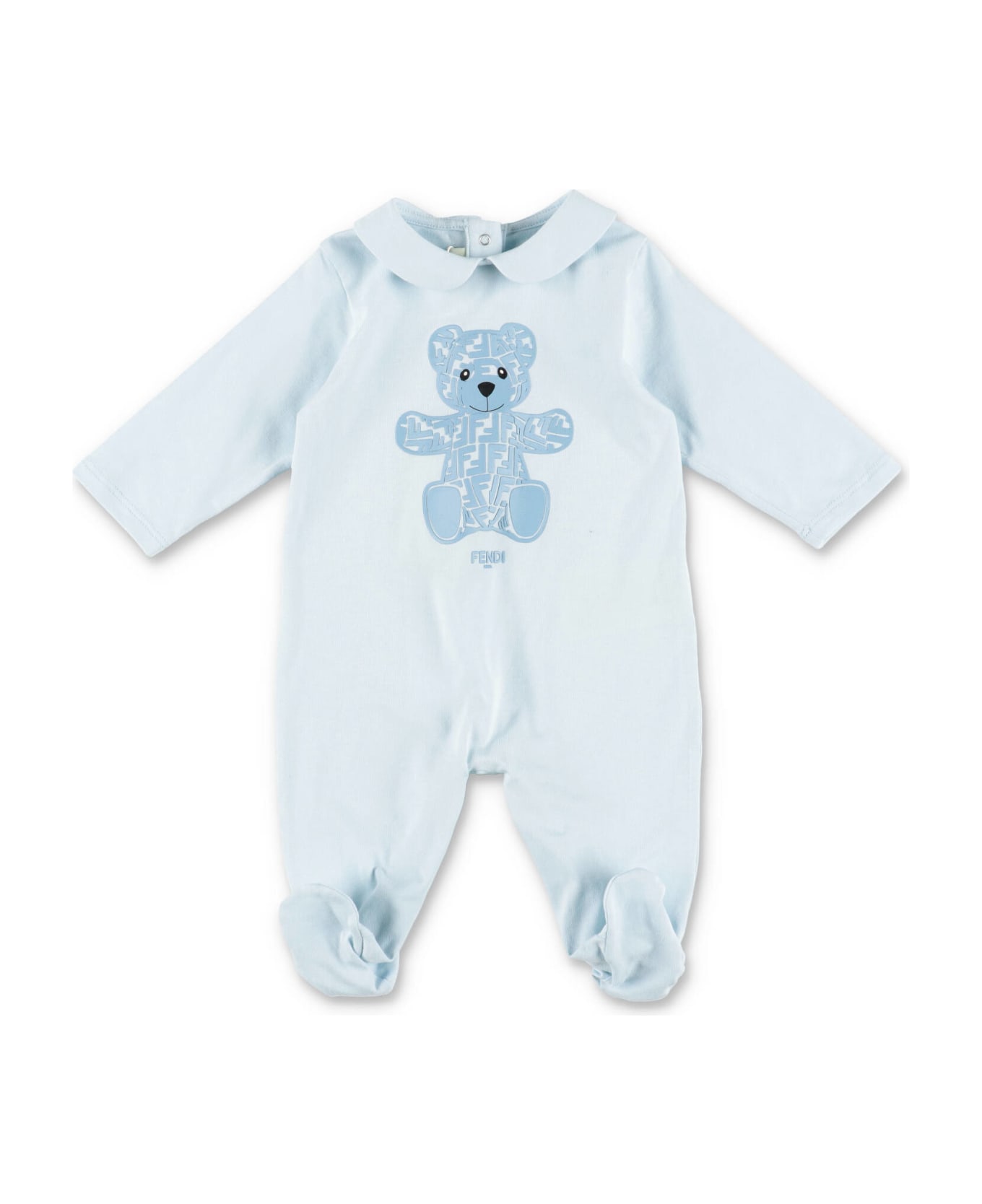 Fendi Set Celeste In Jersey Di Cotone Con Cappello Bavetta E Tutina Baby Boy from Fendi Composition: 94% Cotton, 6% Elastane