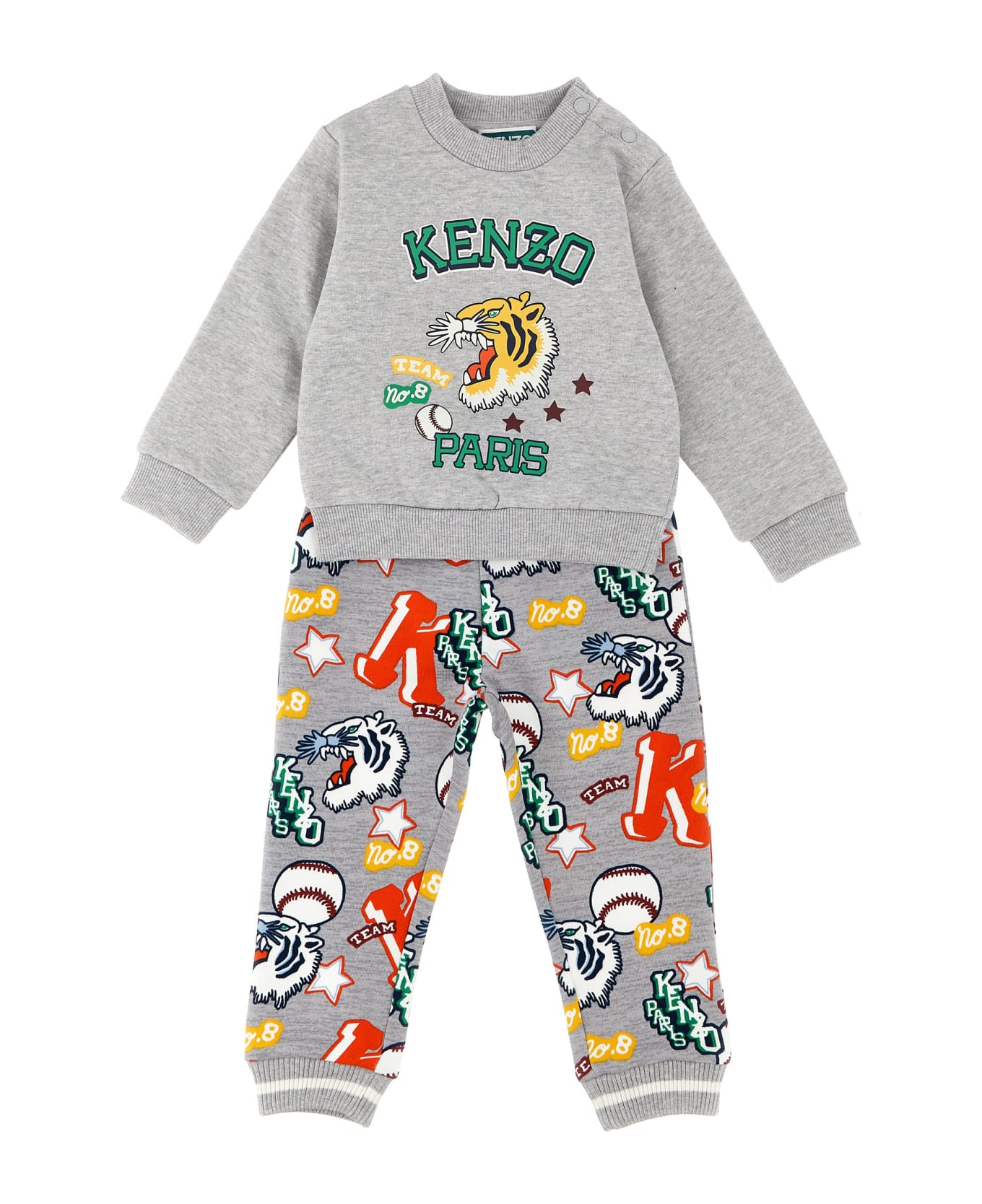 Cotton suit consisting of sweatshirt with front print, crewneck, long sleeves with cuffs, and joggers with all-over print, elastic waistband, ankle cuffs. Composition: 100% cotton