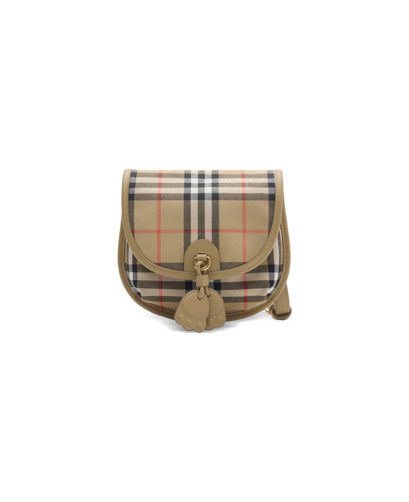 beige check pattern leather trim adjustable strap gold-tone hardware