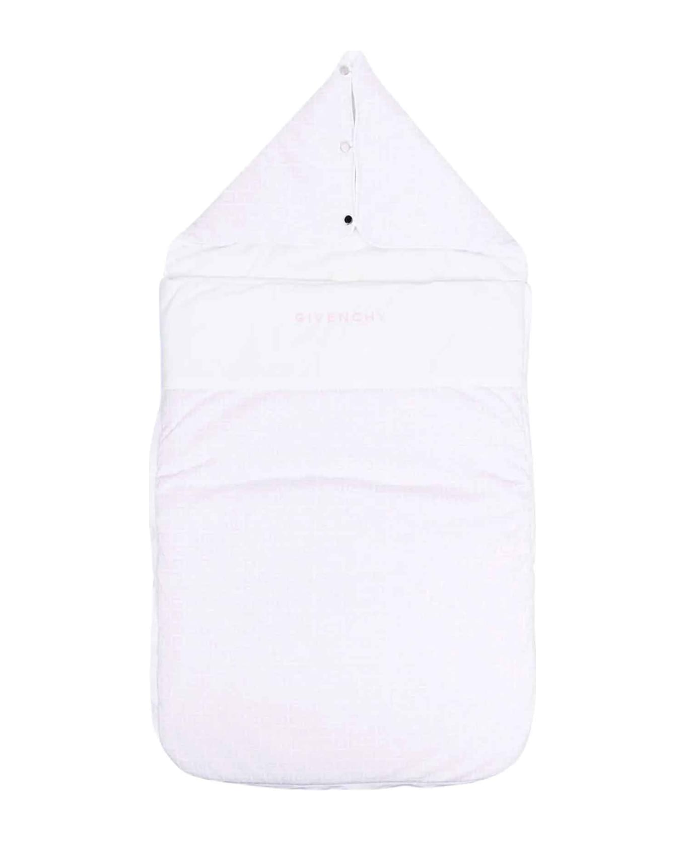 Pink sleeping bag unisex. Monogram pattern, front logo print, logo engraved buttons and padded design. Cotton 100%, Polyester 100%