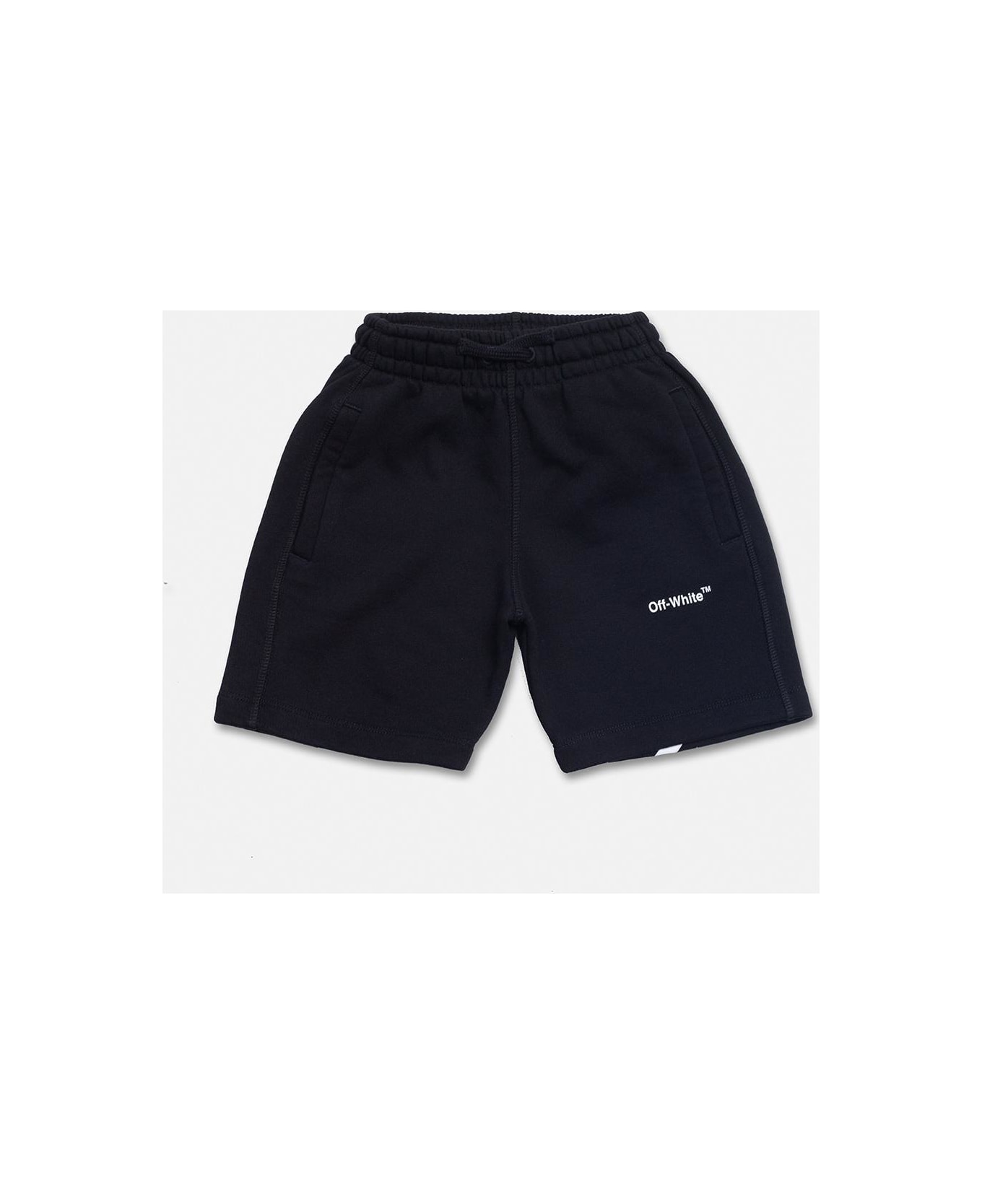 Black shorts from Off-White Kids. Made of cotton, this pair features an elastic drawstring waistband, white logo print and two slip pockets. Composition: 100% Cotton