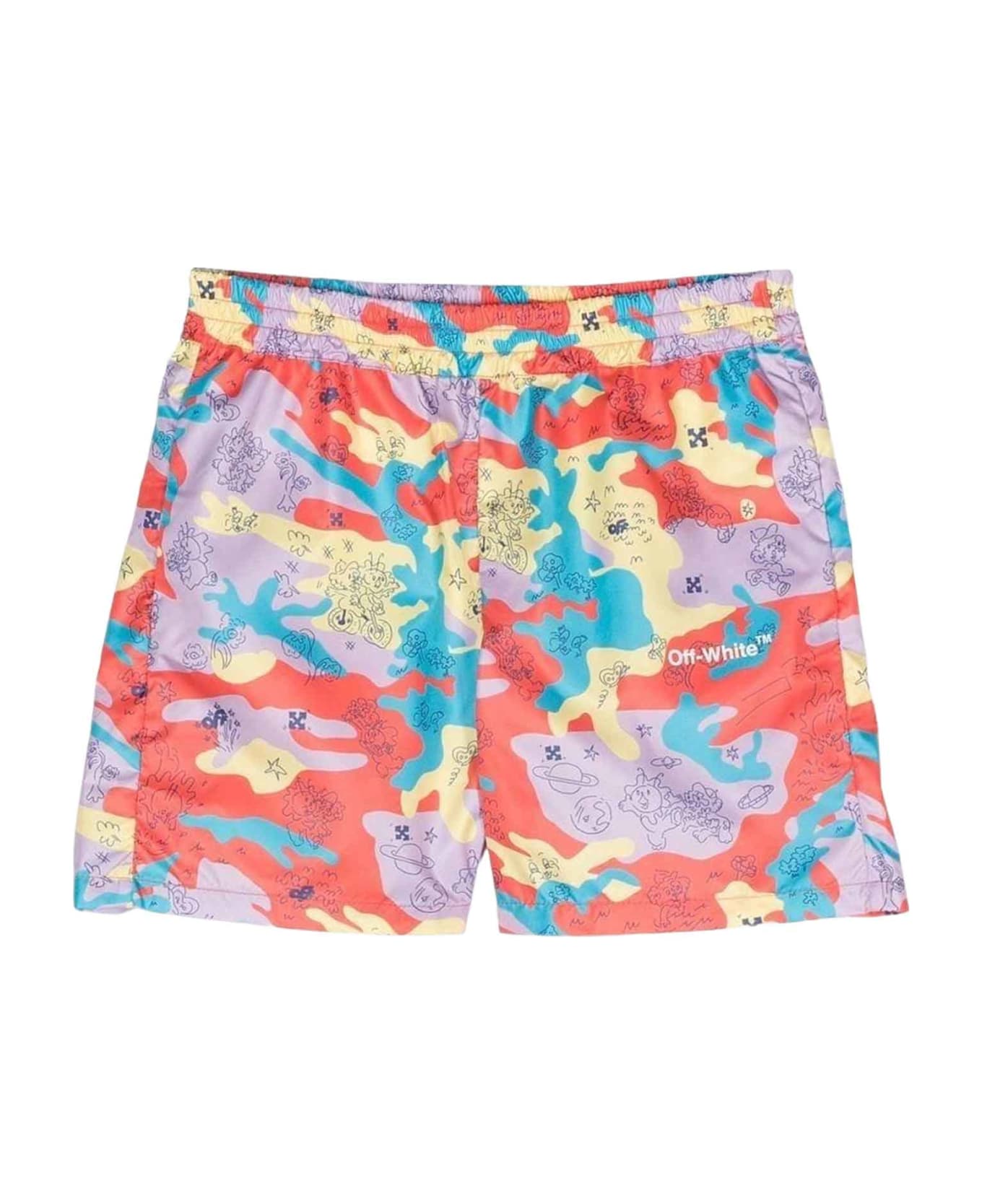 multicolor swimsuit boy. Camouflage print, front logo print, elasticated waist, slip-on design and two side welt pockets. 100% polyester