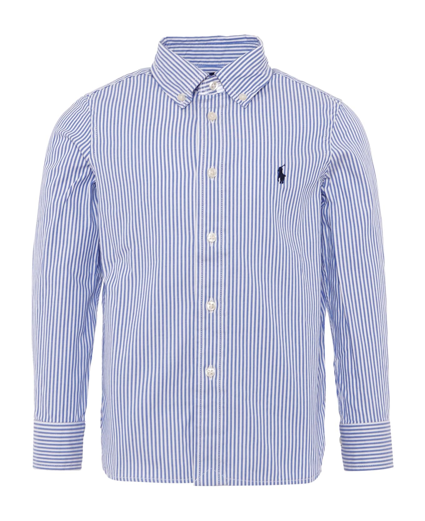 Light blue striped shirt, long sleeves, with collar, front closure with buttons. It is embellished with iconic blue pony embroidered on the chest.