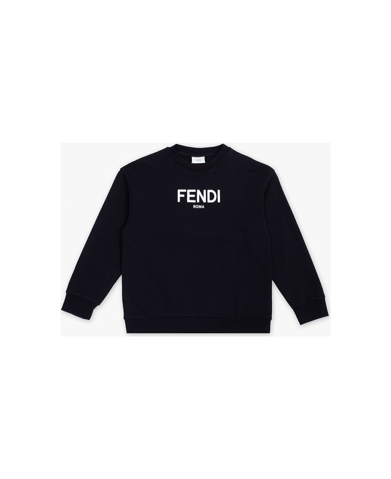 Black crewneck sweatshirt from Fendi Kids. Made of cotton, this long sleeve design features a white logo print and ribbed edges. Composition: 100% Cotton