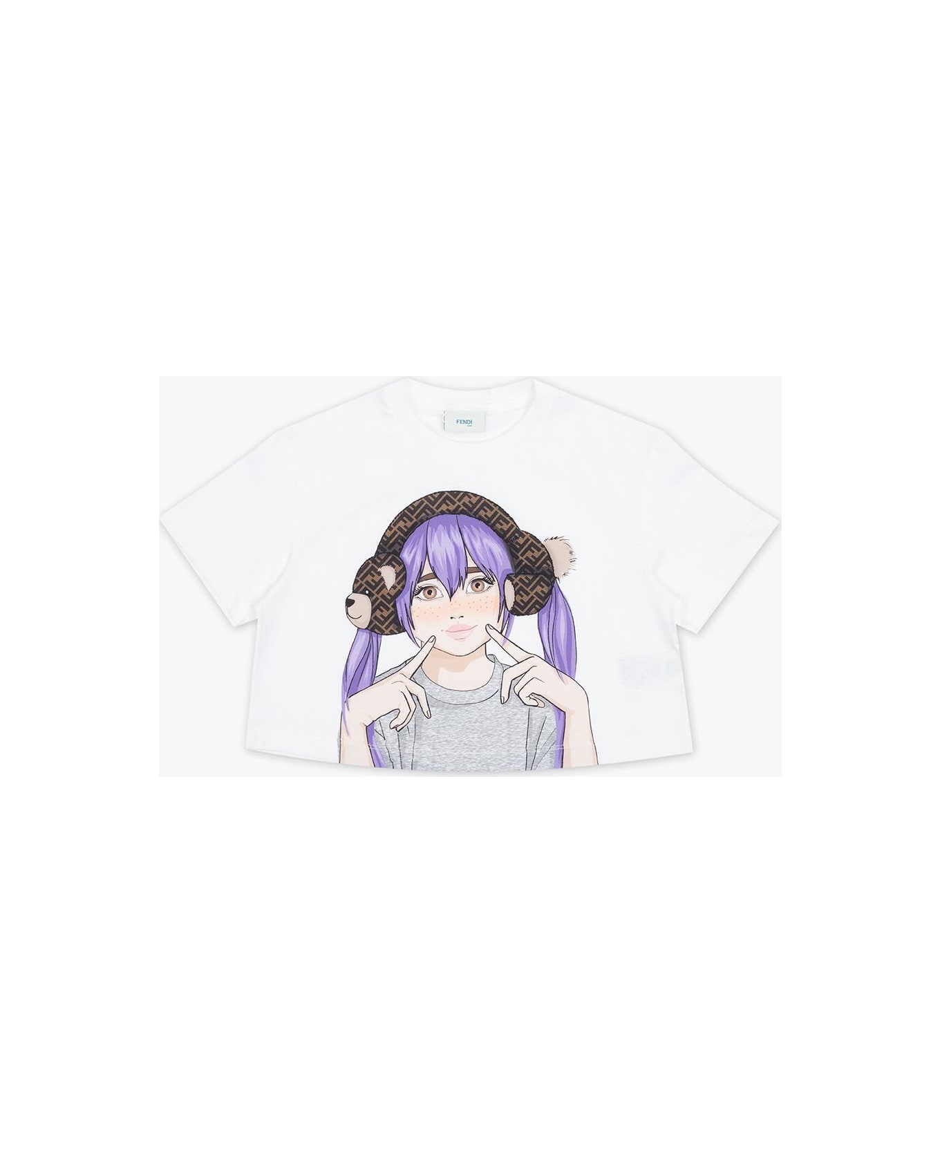 White T-shirt from Fendi Kids. Crafted from cotton, this short sleeve design features a multicolored printed logo pattern and ribbed crew neck. Composition: 100% Cotton