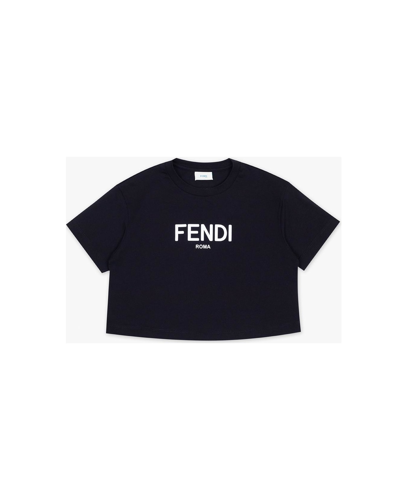 Black T-shirt from Fendi Kids. Made of cotton, this short sleeve design features a white logo print and ribbed crew neck. Composition: 100% Cotton