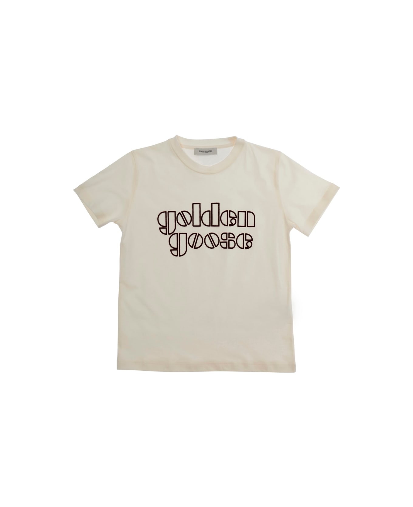 White Crewneck T-shirt With Logo Lettering On The Front In Cotton Boy
