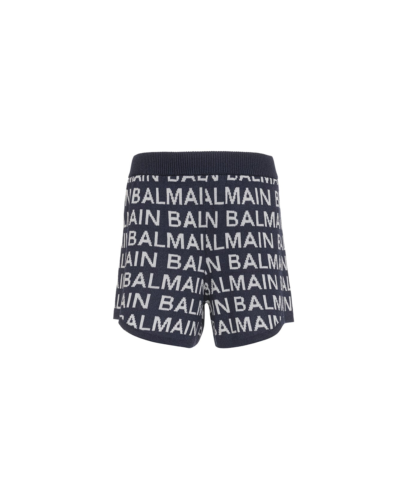 Balmain Kids shorts crafted from a black cotton blend knit with an elasticated waistband and an all-over white Balmain logo. Composition: Composition: 57% Cotton, 43% Elastane.