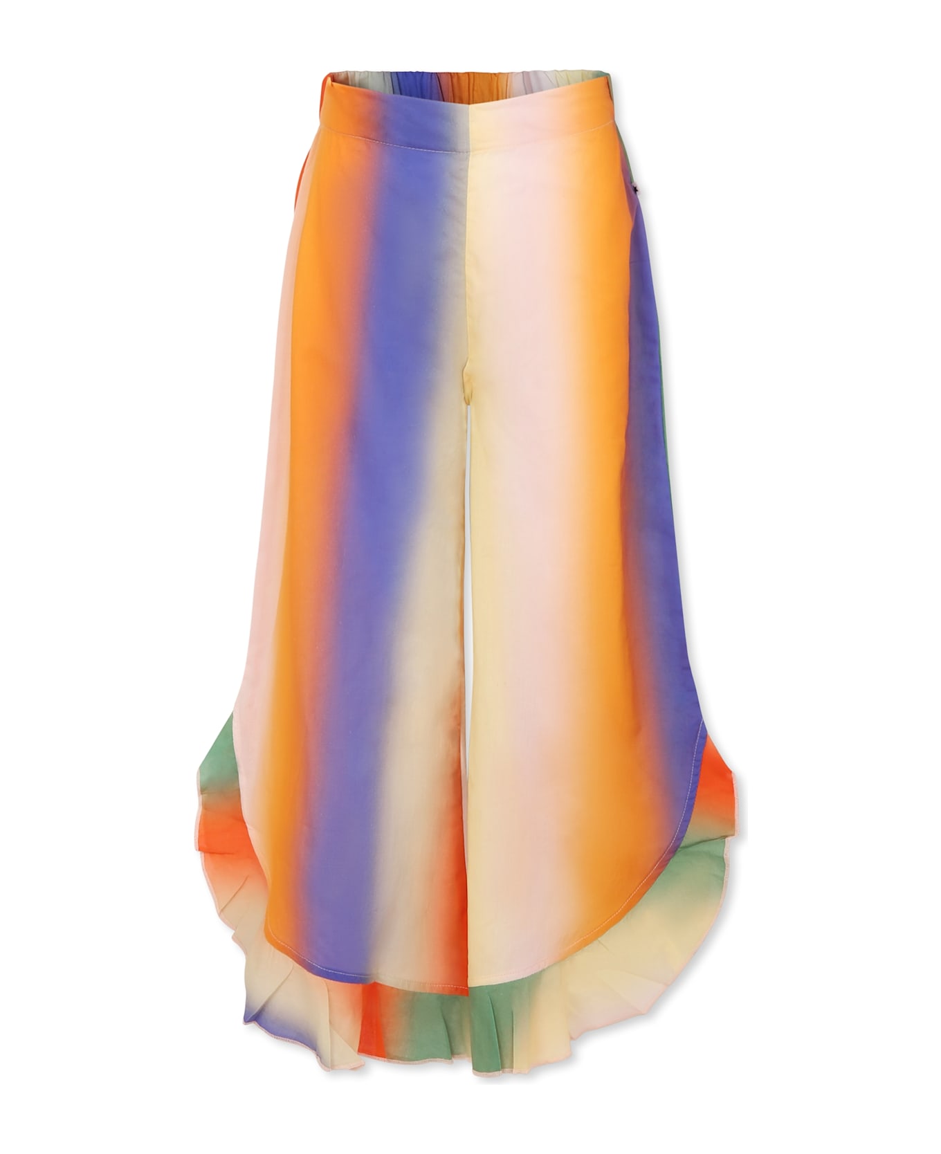 Multicolor GOTS certified organic cotton cover-up, with elasticated waist, ruffles and side slits at the bottom.