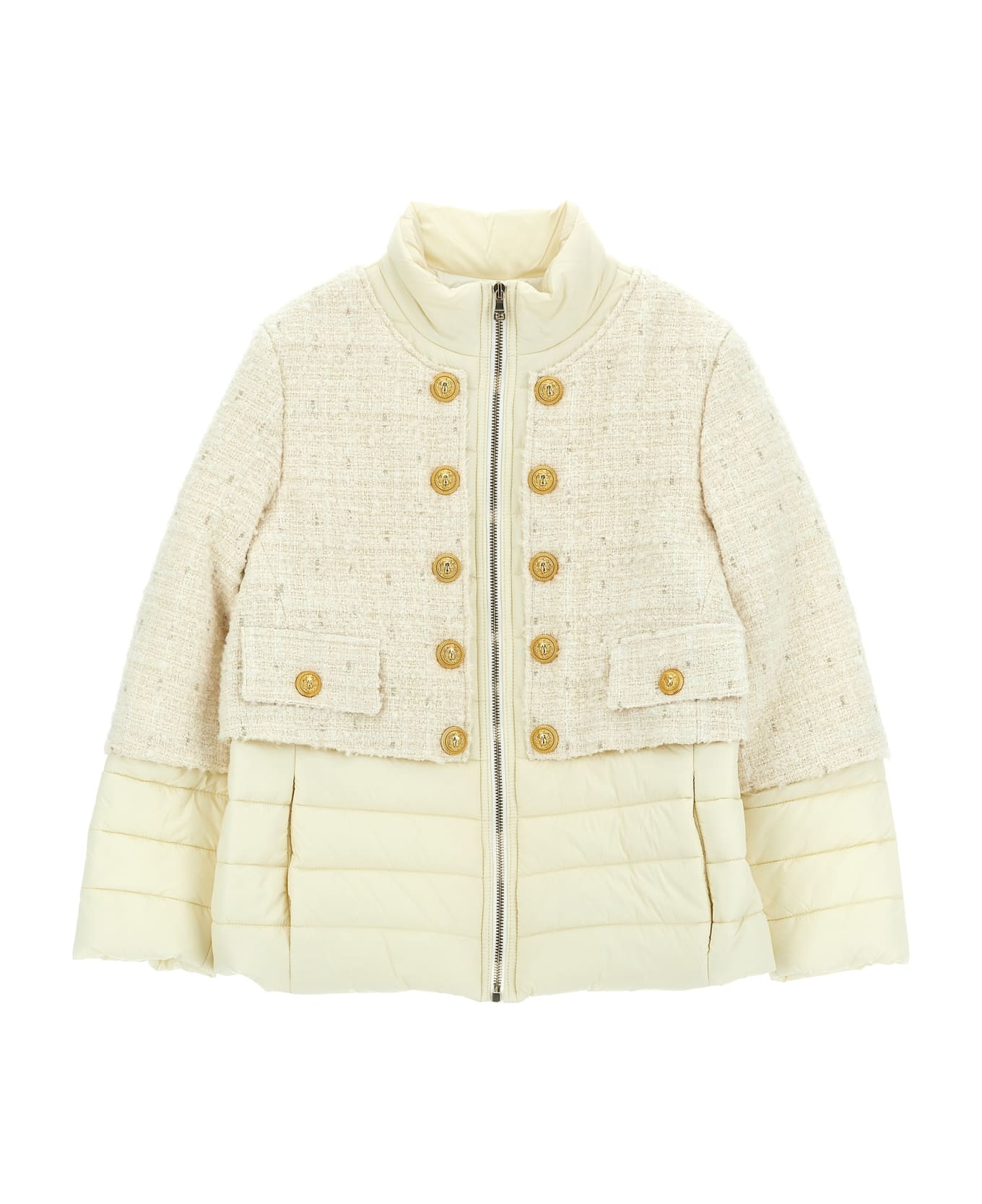 Padded nylon down jacket with tweed insert with logo buttons, zip closure, pockets, and long sleeves. Composition: 42% ac 22% co 15% pl 13% wo 7% pa 1% met