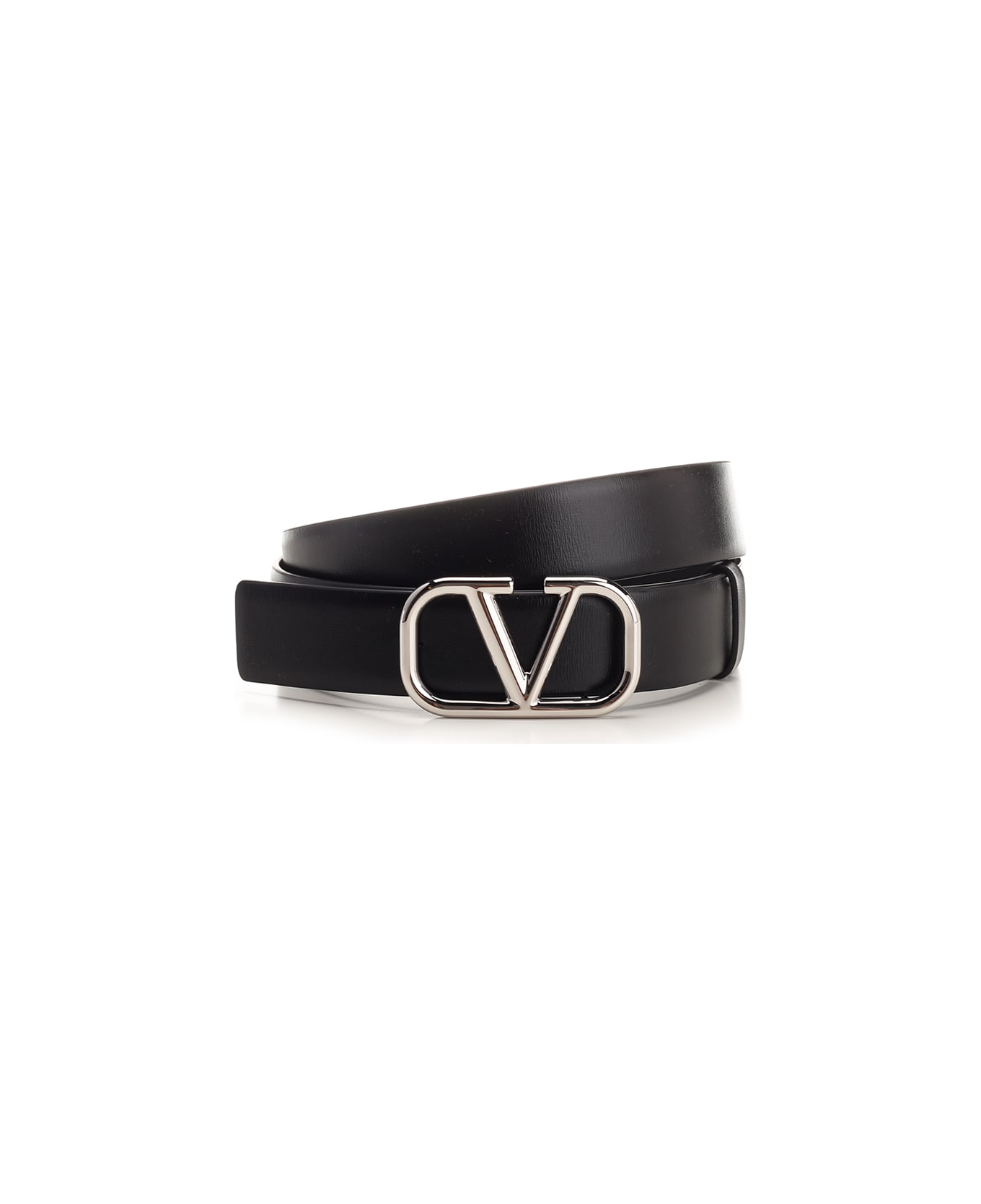 Black belt with silver "V" buckle from Valentino Garavani in calf leather. Composition: I CALF LEATHER - BOS TAURUS