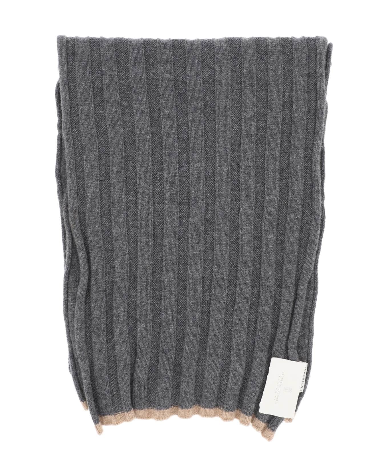 Brunello Cucinelli scarf crafted in soft ribbed cashmere yarn, finished with contrasting edges. Composition: 100% WS