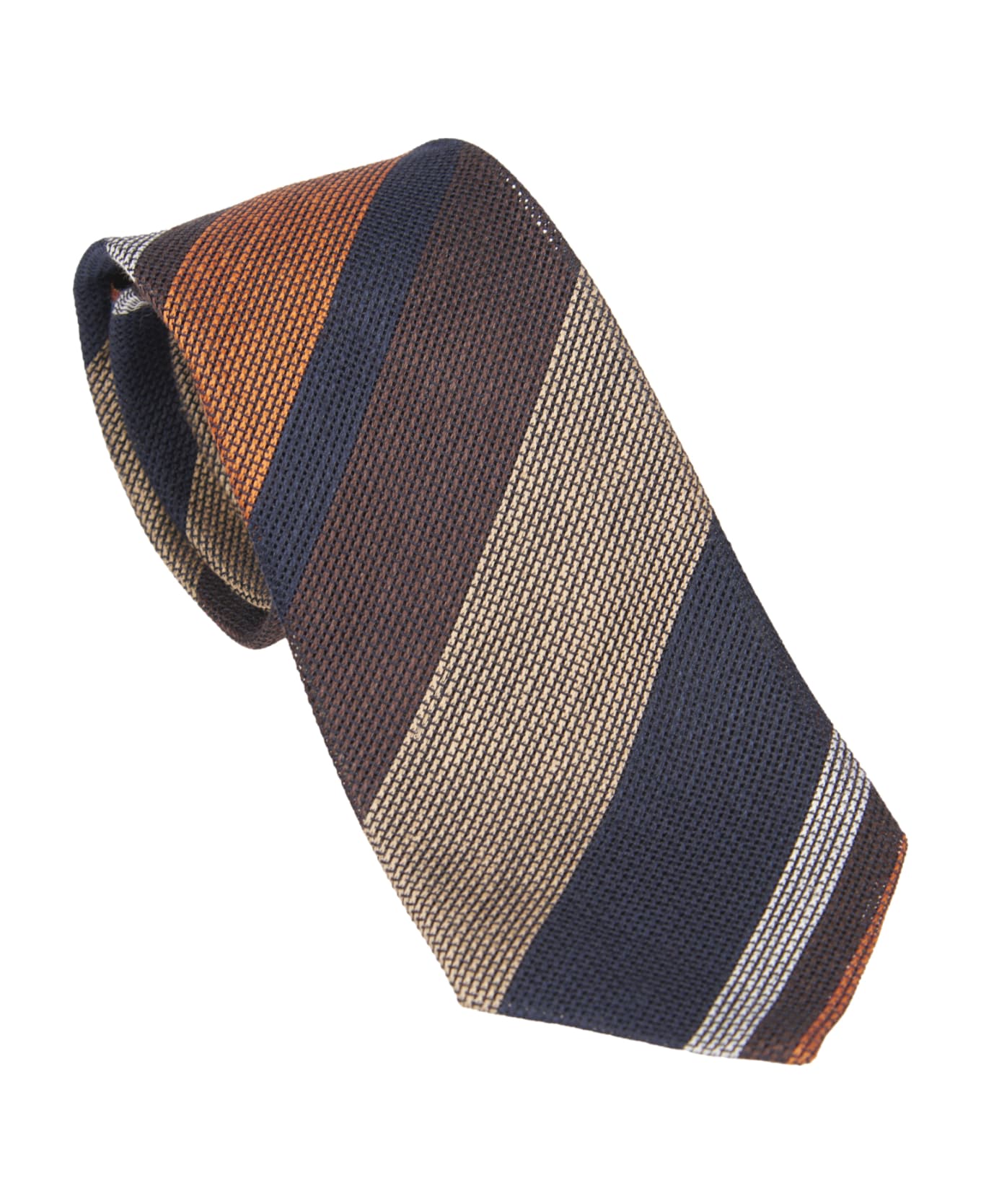 Multicolor tie with wide oblique stripes. Loop with multicolor stripes. Width 8 cm. Composition: 57% linen 43% silk. Made in Italy.