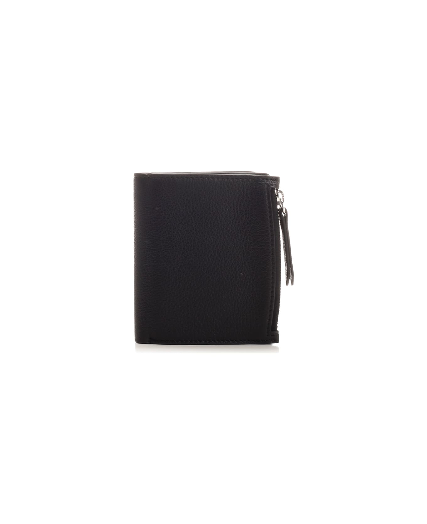 Black 'Four Stitches' wallet from Maison Margiela in goatskin, eight card slots, coin purse with zip, four stitching on the back side. Composition: T1 100% PCP - T2 100% PCP - T3 100% VI - T4 100% OTN - T5 94% ZN 4% ALL 2% RME