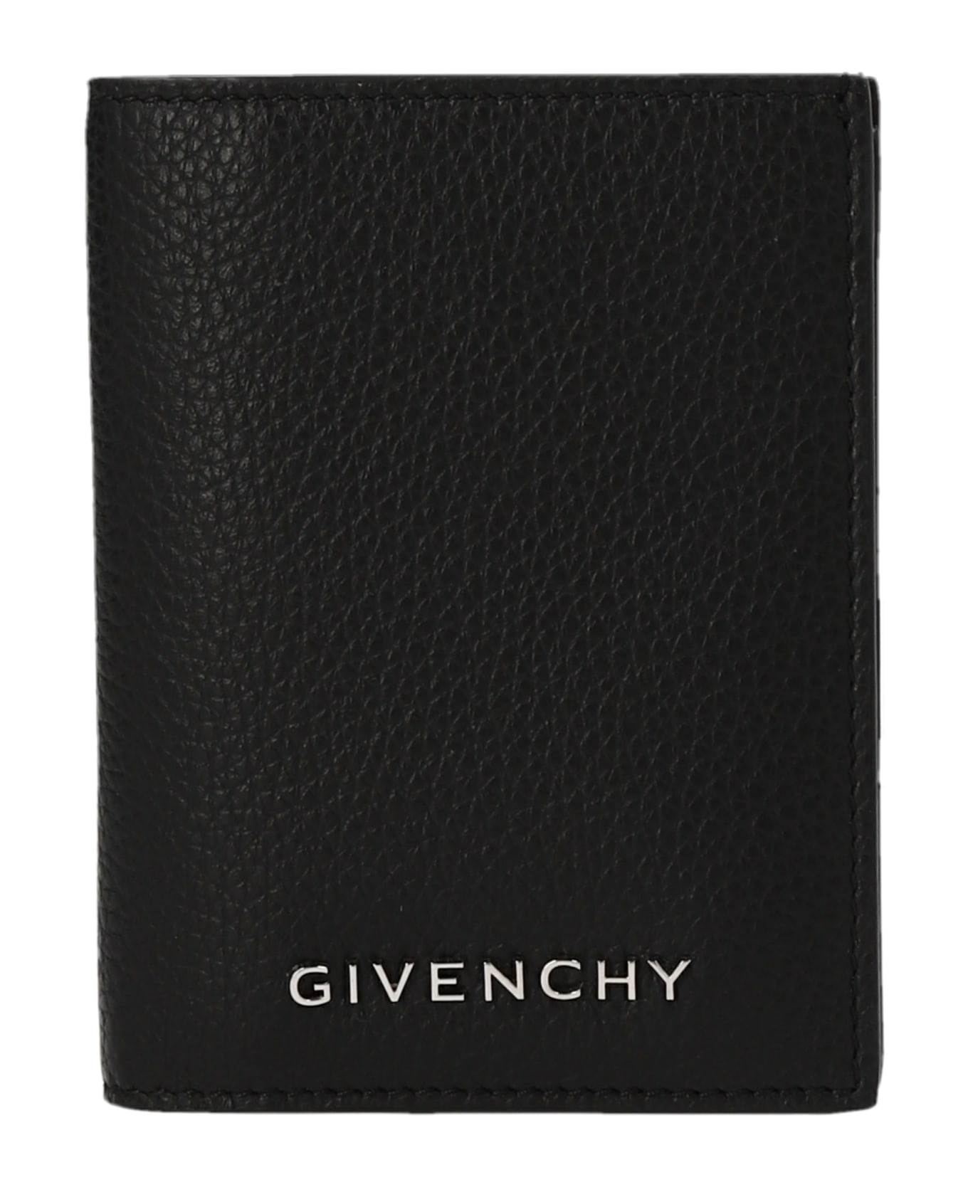 Leather card holder featuring a front metal logo appliqué. Composition: 100% calfskin leather (Bos Taurus)