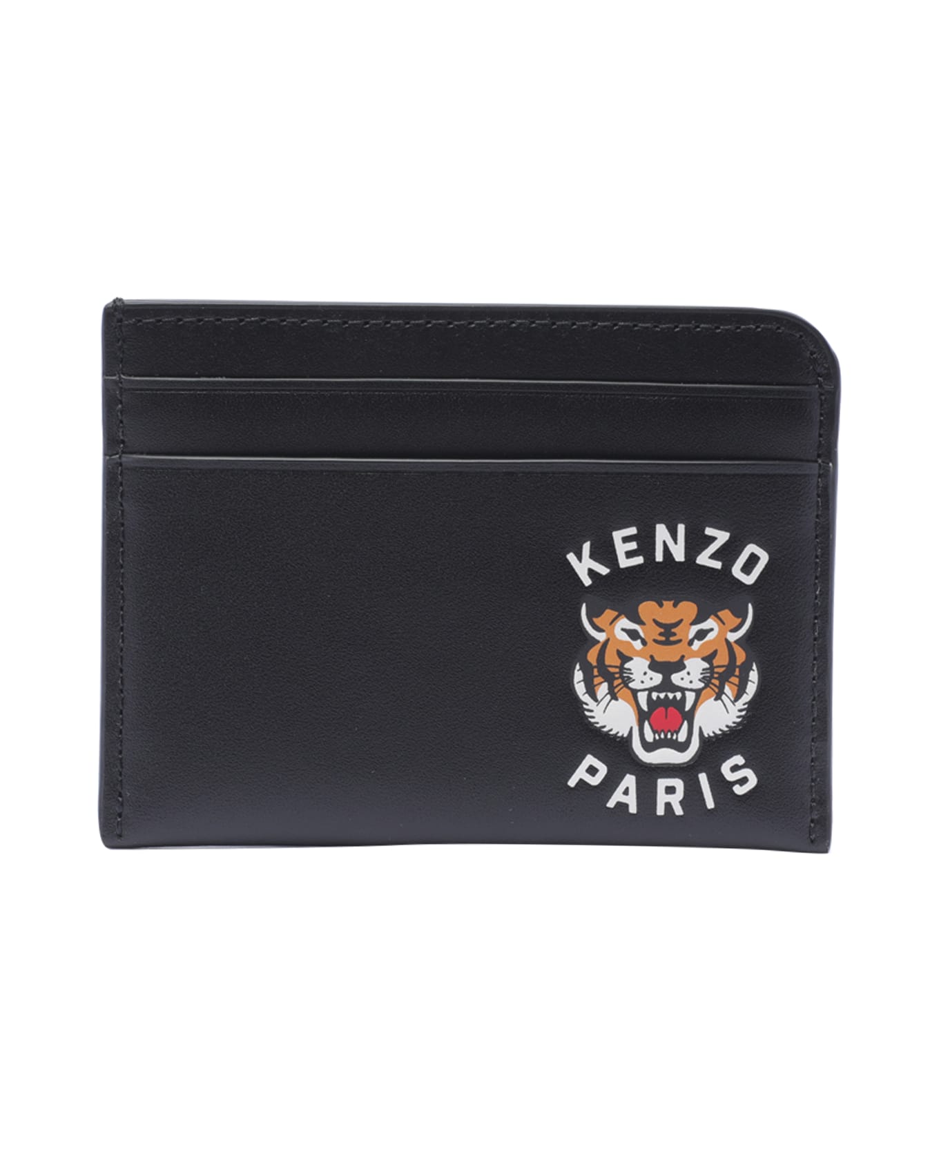 Kenzo black leather Lucky Tiger cardholder, 5 slot