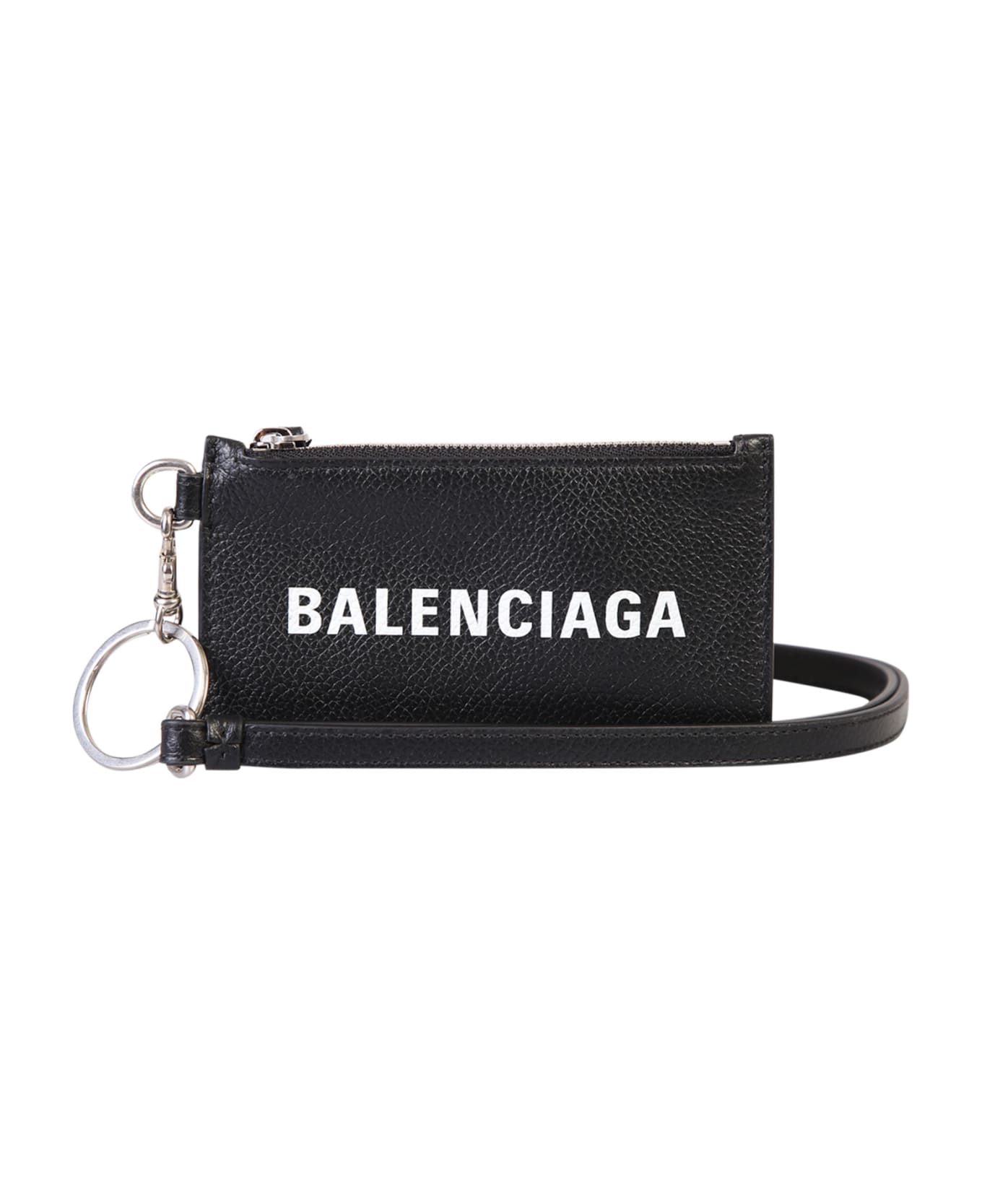 Front logo. Top zip fastening. Slot cards. Detachable shoulder strap. Keyring attachment. Color: black