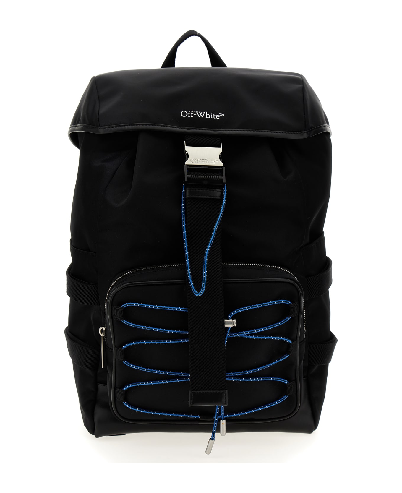 Courrier' backpack in technical fabric with leather piping, front trekking lace detail, and logo and metal tuk closure. Adjustable shoulder straps. Composition: 100% polyamide