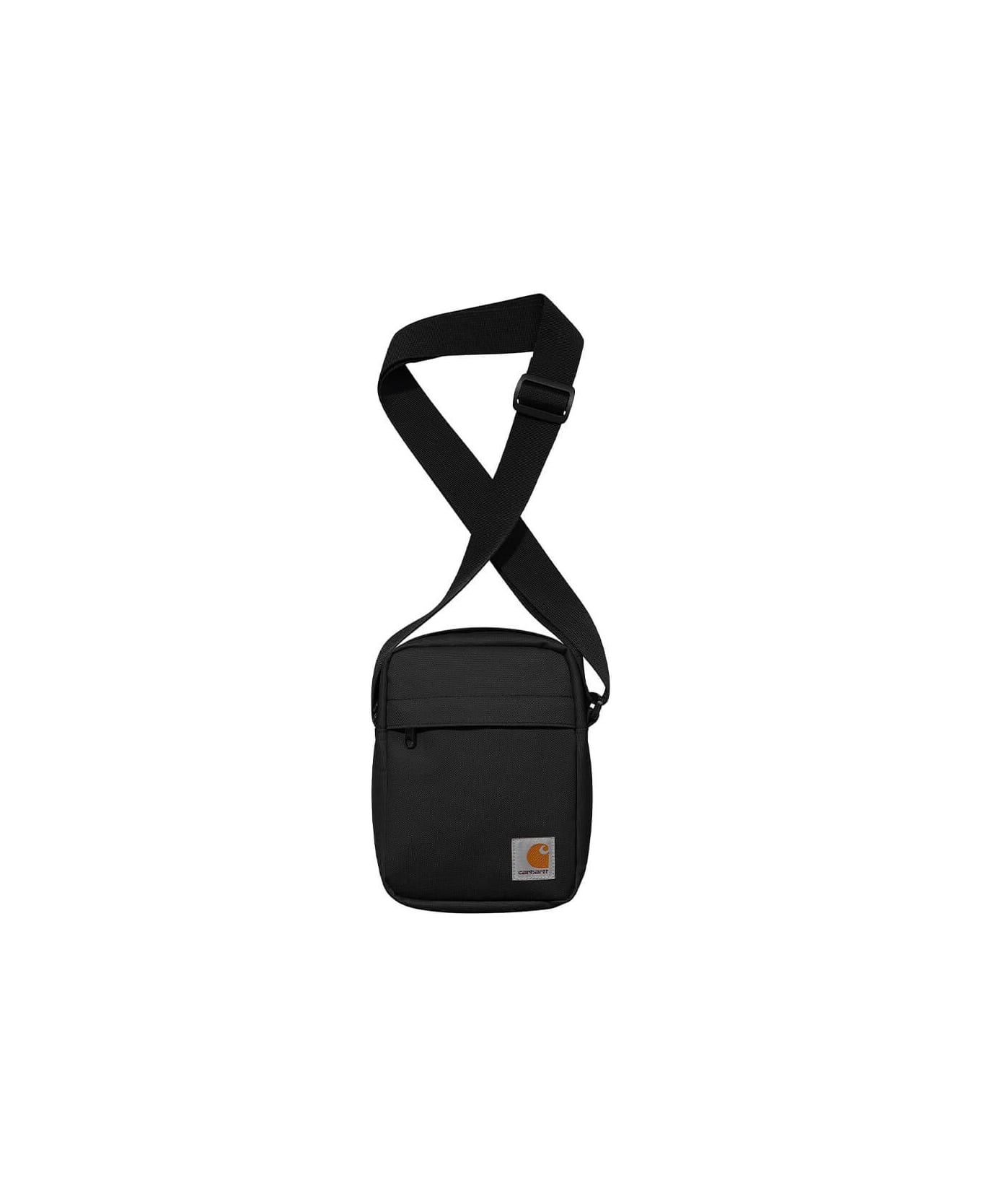 Jake shoulder pouch by Carhartt Wip made of black recycled polyester, waterproof, featuring a main compartment with zip and flat pocket on the front. Adjustable shoulder strap, measures 19. 5x14. 5x6 cm. Composition: 100% recycled polyester.