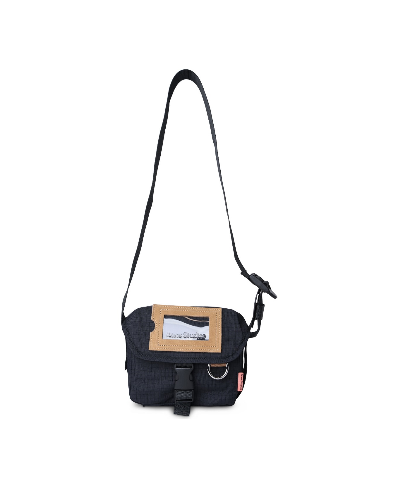 Made of ripstop nylon, adjustable shoulder strap, transparent compartment with embossed logo with suede insert for address, silver hardware on the front, clip-buckle adjusted flap, inner pouch pocket, pouch pocket on the back\n17. 5 x 17 x 7. 5 cm