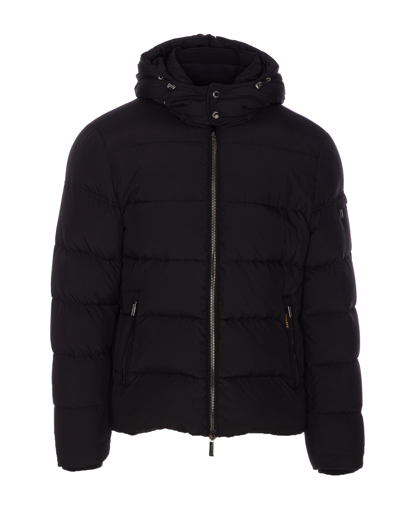Moorer black Brett down jacket with zip closure, zip pockets, padded, removable hood detail, zip pocket on sleeves Composition: 100% Polyamide, 88% Polyamide, 12% Polyurethane, 100% Polyester