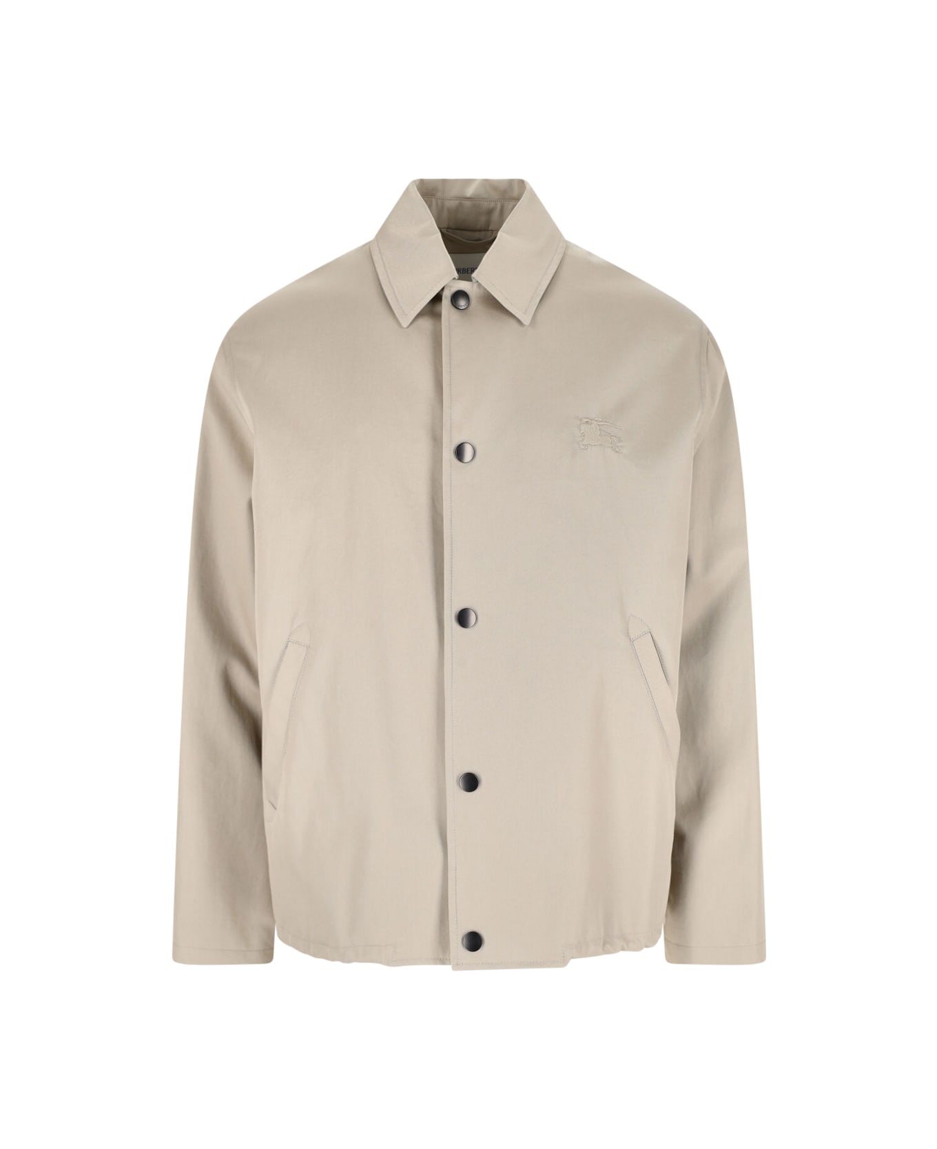 Burberry 'EKD' beige cotton jacket with classic collar, button closure, tonal logo embroidery on the chest, two side pockets, elastic hem. Composition: 100% Cotton