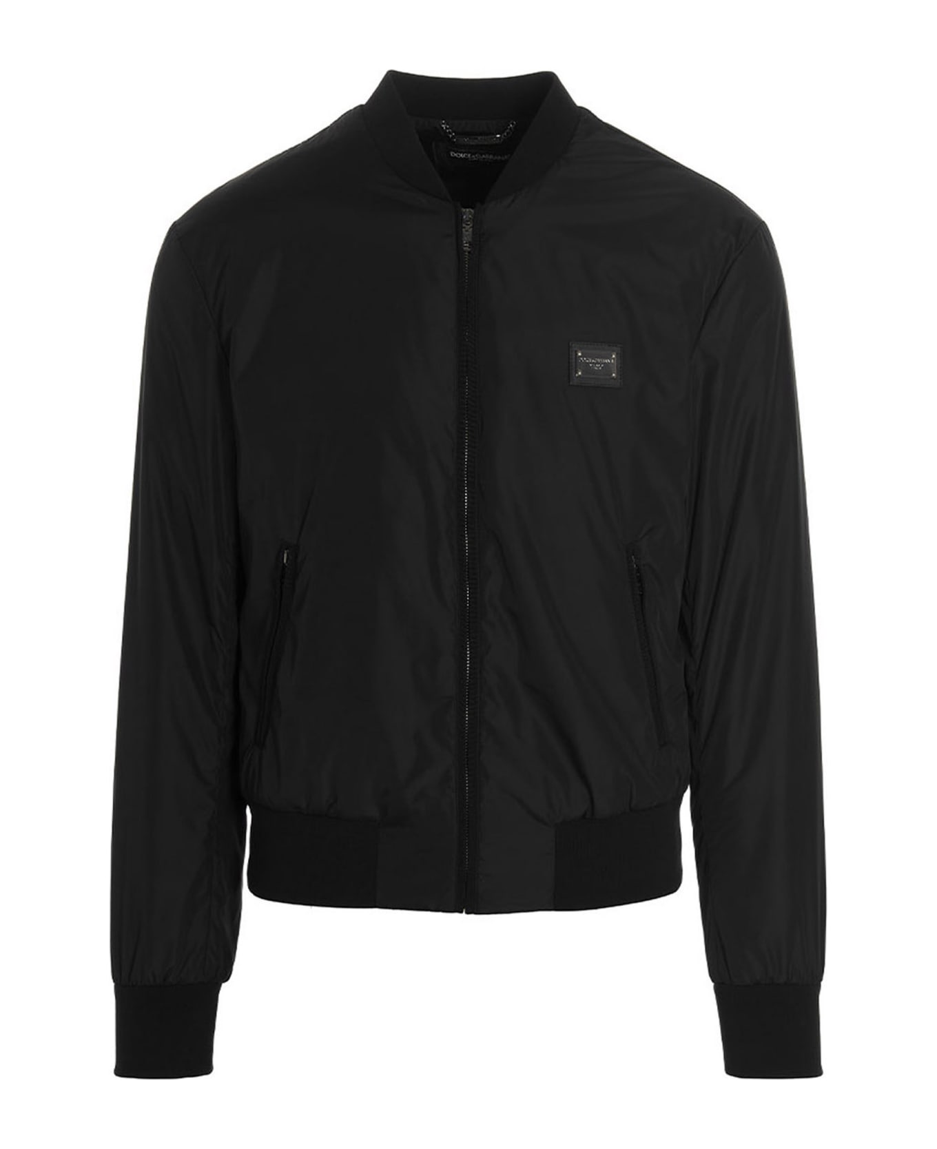 DG Essential' nylon bomber jacket with zip closure, front logo plaque, pockets, long cuffed sleeves, knitted collar and bottom hem. Composition: 100% polyamide