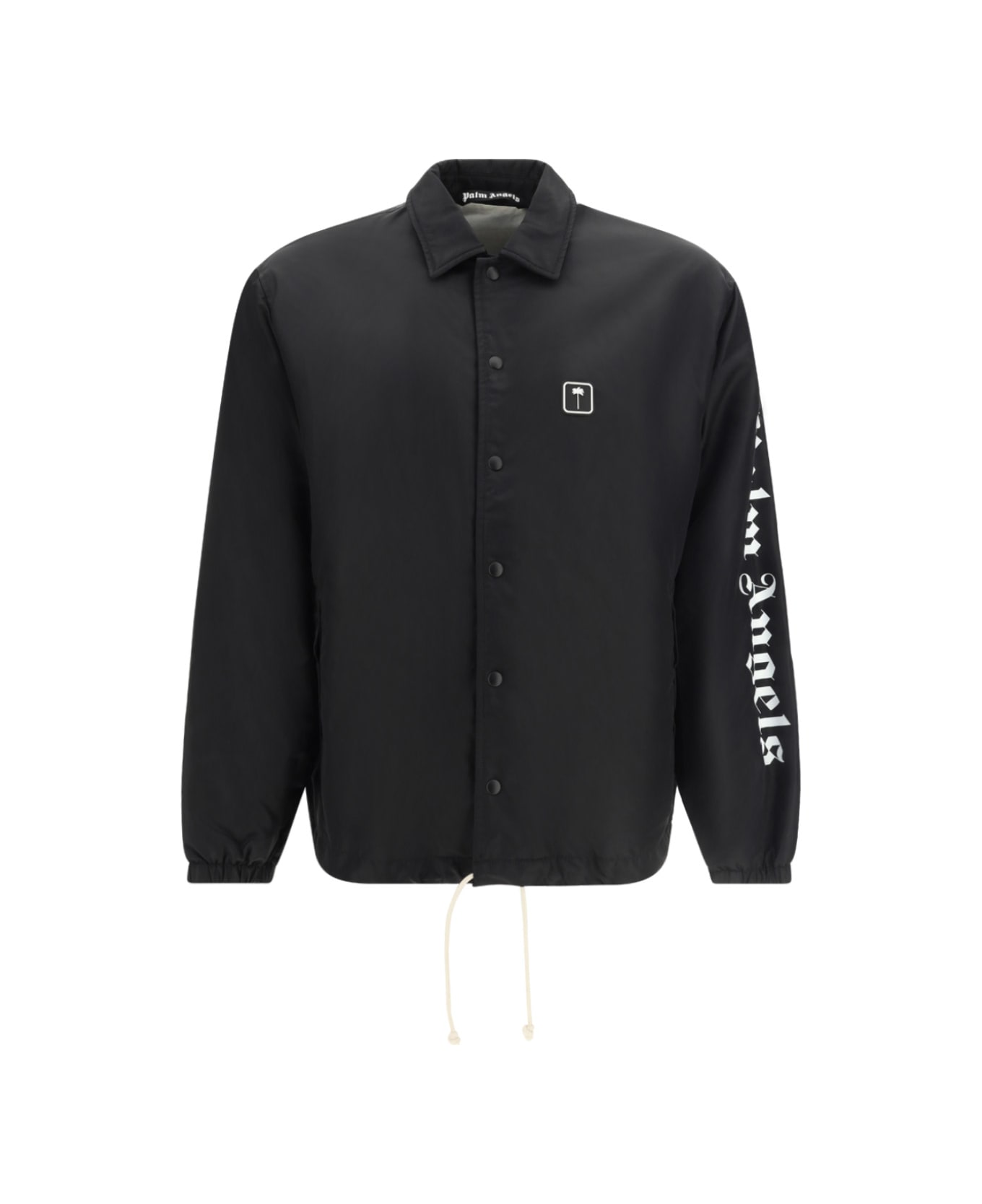 Cotton coach jacket by palm angels, classic collar, front button closure, elasticized cuffs, elasticized hem, embossed patch with iconic brand logo applied on front, contrasting iconic brand monogram on sleeve, regular fit. Composition: 100% % Cotton