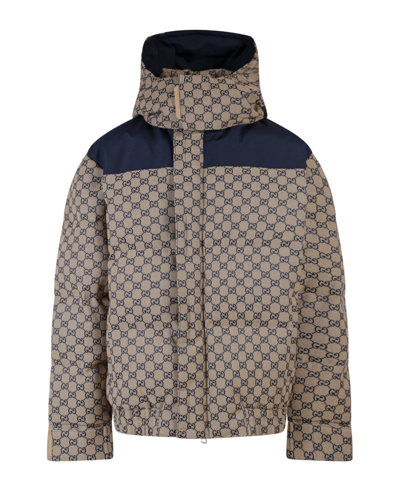 Padded and quilted GG fabric jacket with nylon inserts