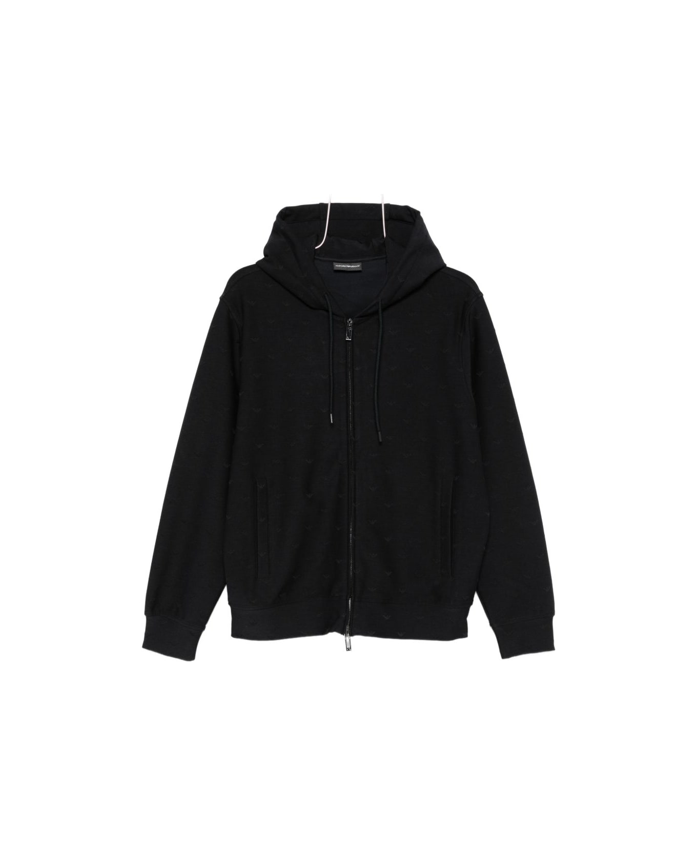 blue logo pattern zip fastening hood ribbed cuffs welt pockets