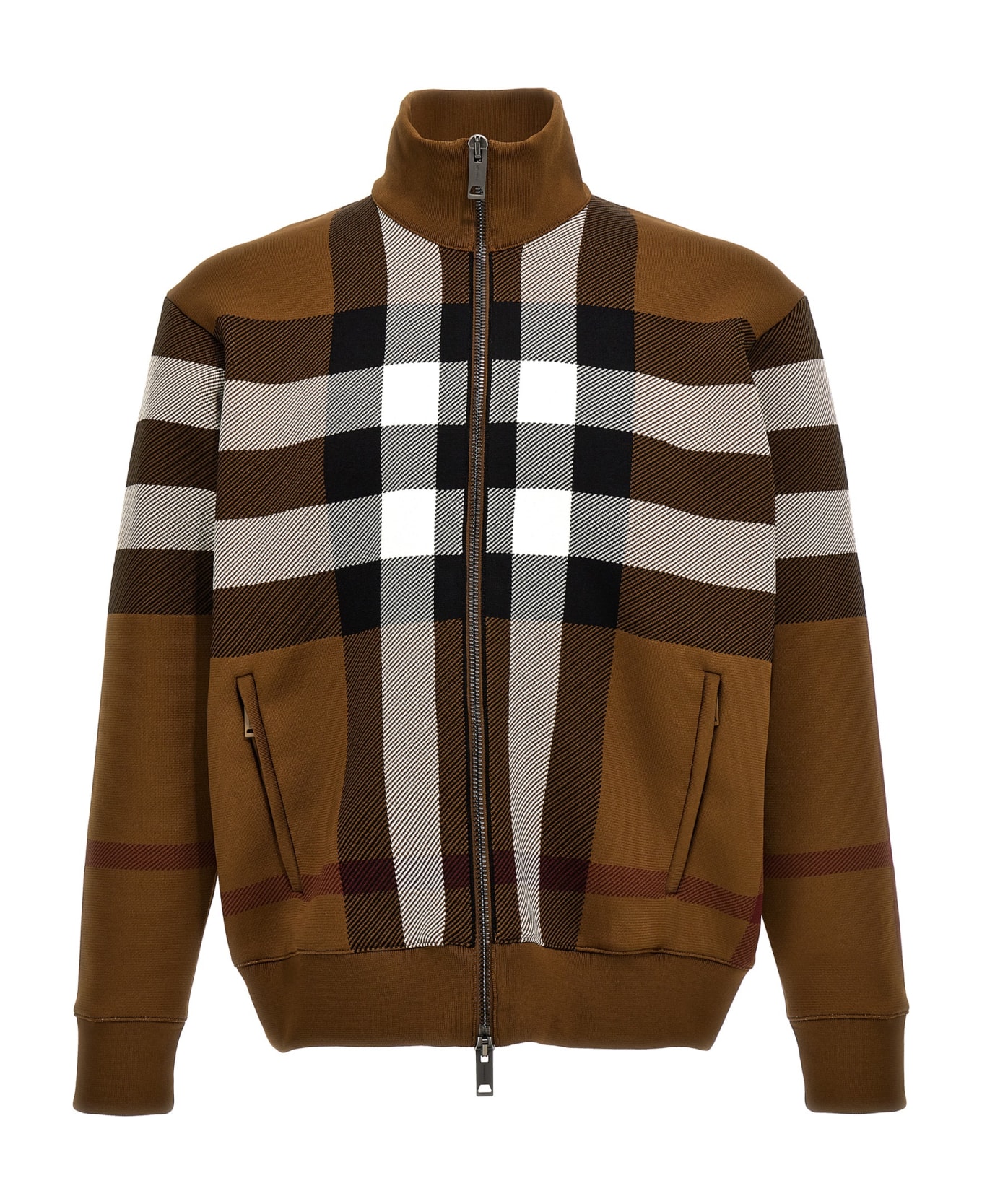 'Jaxon' sweatshirt in technical fabric with check print, zip closure, pockets, long cuffed sleeves, high neck.