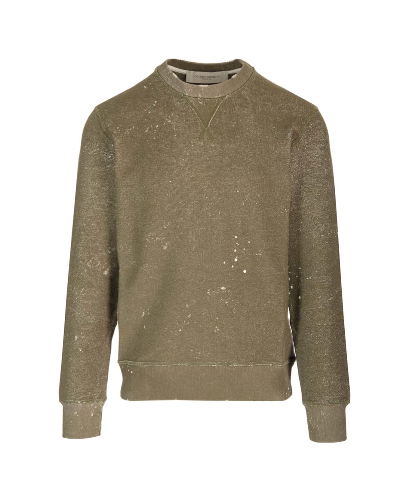 'Journey' distressed sweatshirt in military green cotton from Golden Goose.