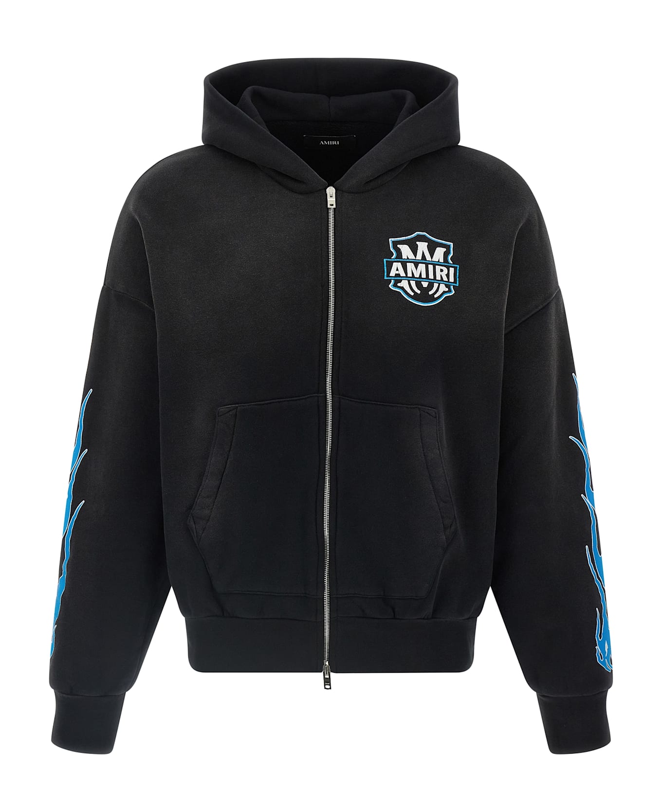 'MA Flames' cotton fleece hoodie with washed délavé and prints, front zip closure, pockets, long sleeves with cuffs and dropped shoulders, headband. This garment has undergone a special process that has resulted in intentional variations in shades and colors and adds unique characteristics to the garment.