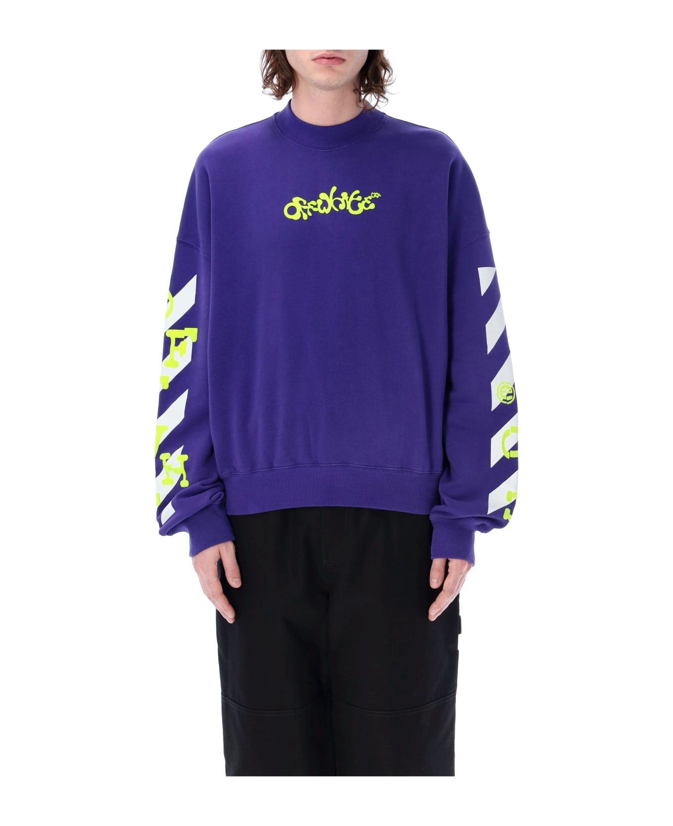 Cotton Opposite Arrow Sweatshirt By Off-white. Featuring: Crew Neck Long Sleeves Dropped Shoulders Flocked Logo At Front Diagonal Motif Print At Sleeves Arrow Print At Back Contrast Flocked Logo At Back And Sleeves Rib Trims Loose Fit The Model Is 1,90 M Tall And He's Wearing Size L
