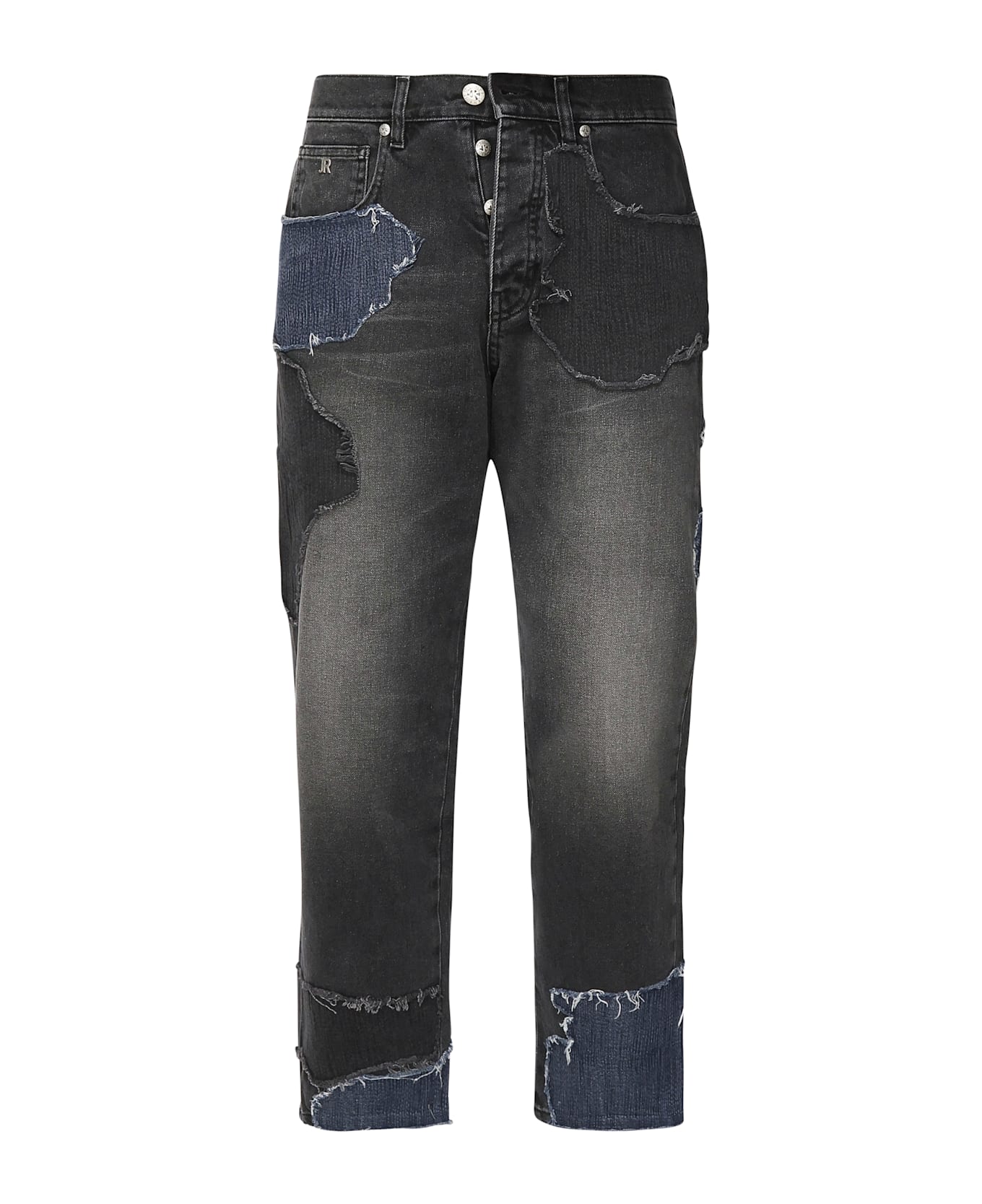 -Cropped jeans at the ankle -Double denim effect -Closure with front buttons -Belt loops -Five pockets -Colour: Black/blue