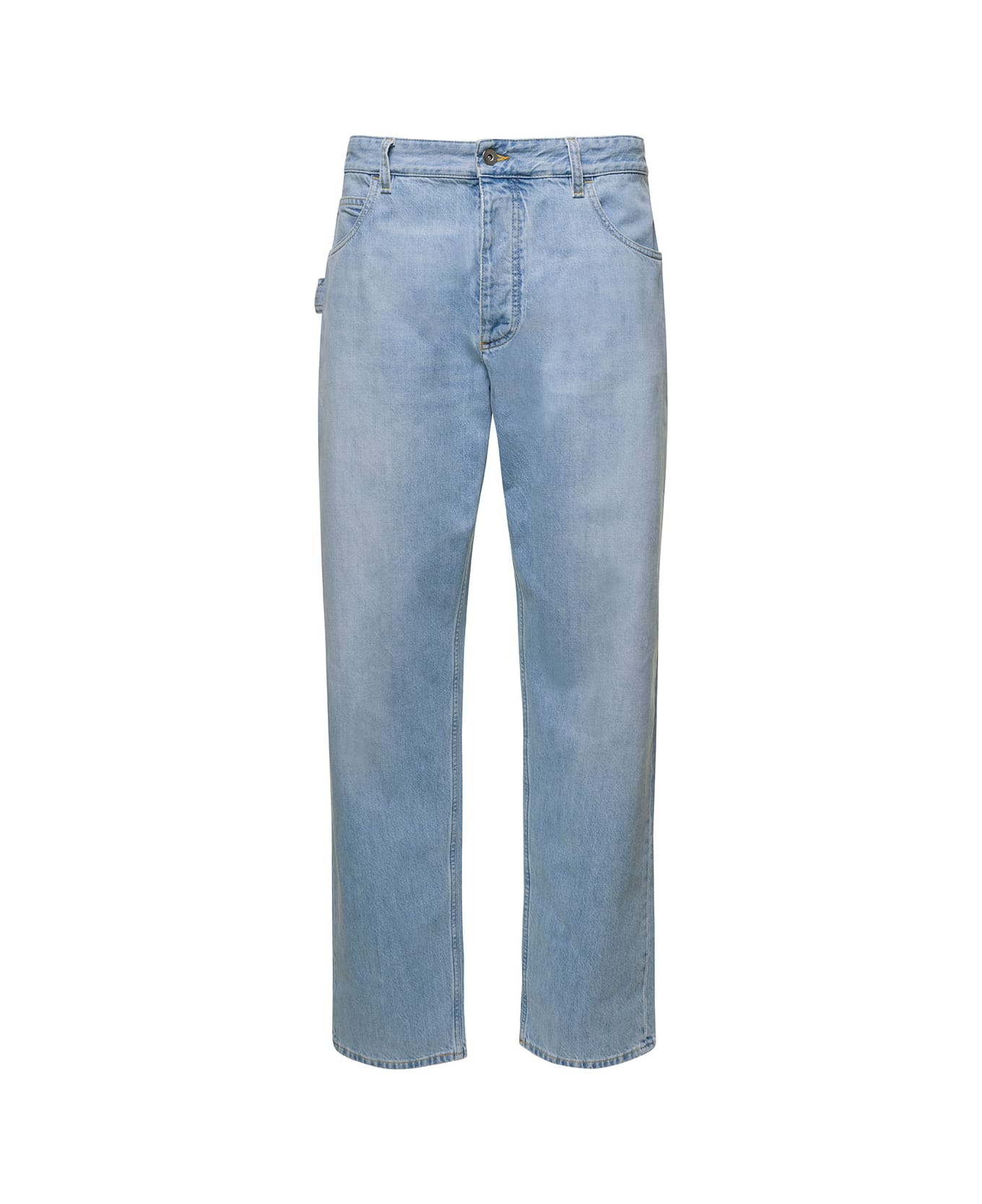Light Blue 5-pocket Style Jeans With Green Patch In Cotton Denim Woman