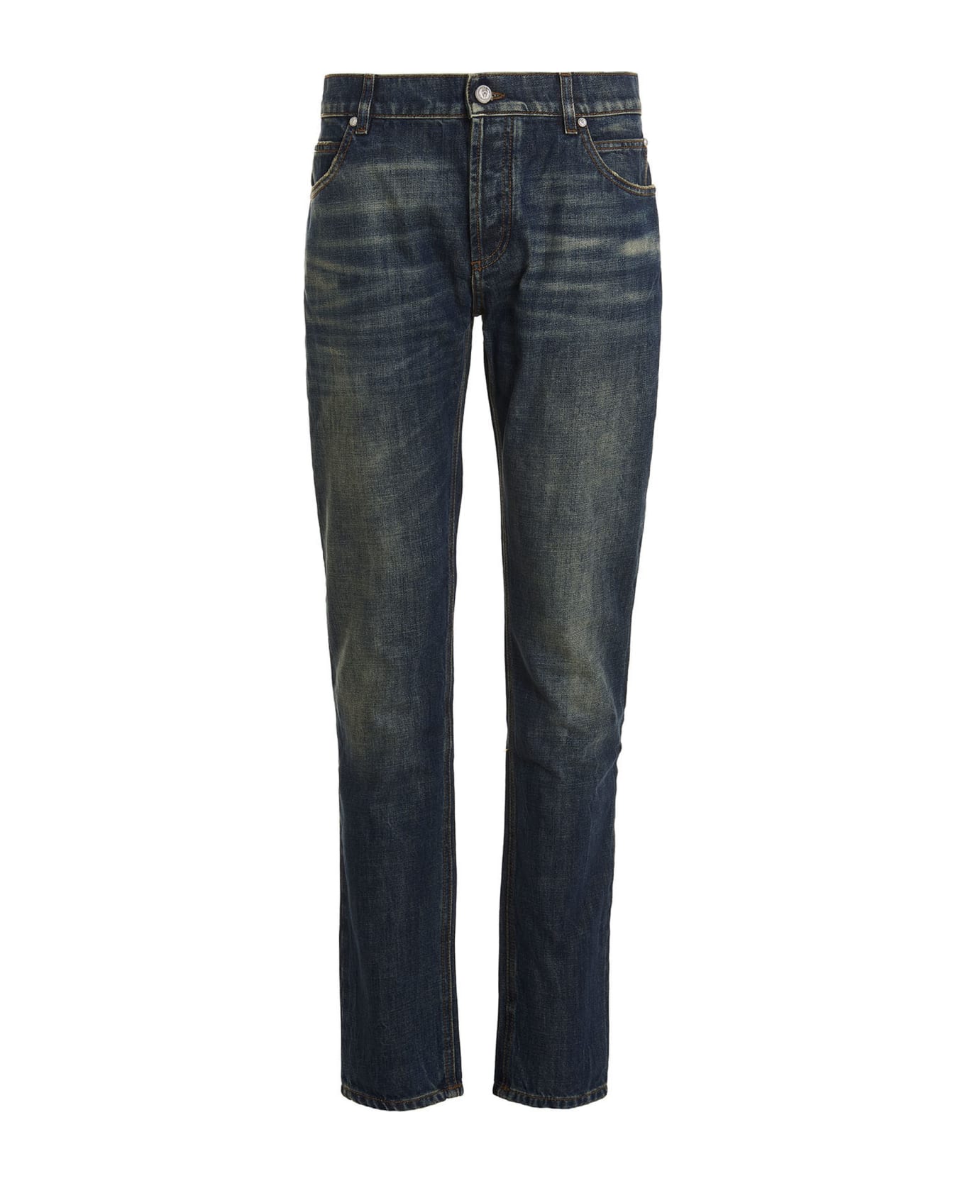 'Stonewash' cotton denim jeans with a button closure, five pockets, a leather logo tag and metal logo detailing at the back.
